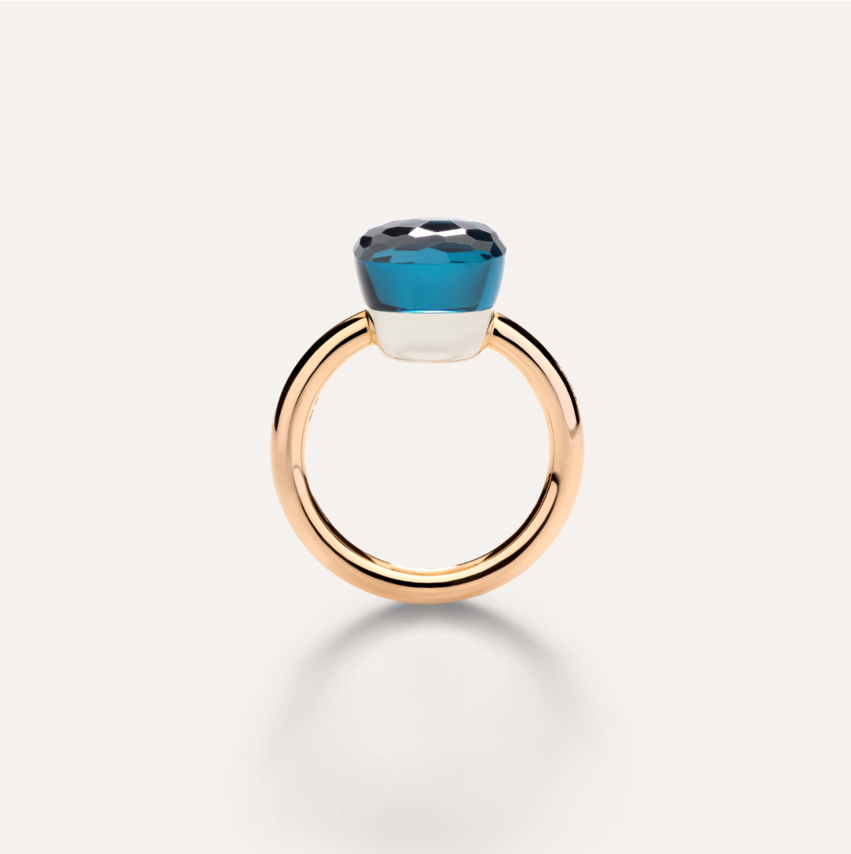 A Pomellato London blue topaz Nudo Classic ring, set in 18K white and rose gold.
