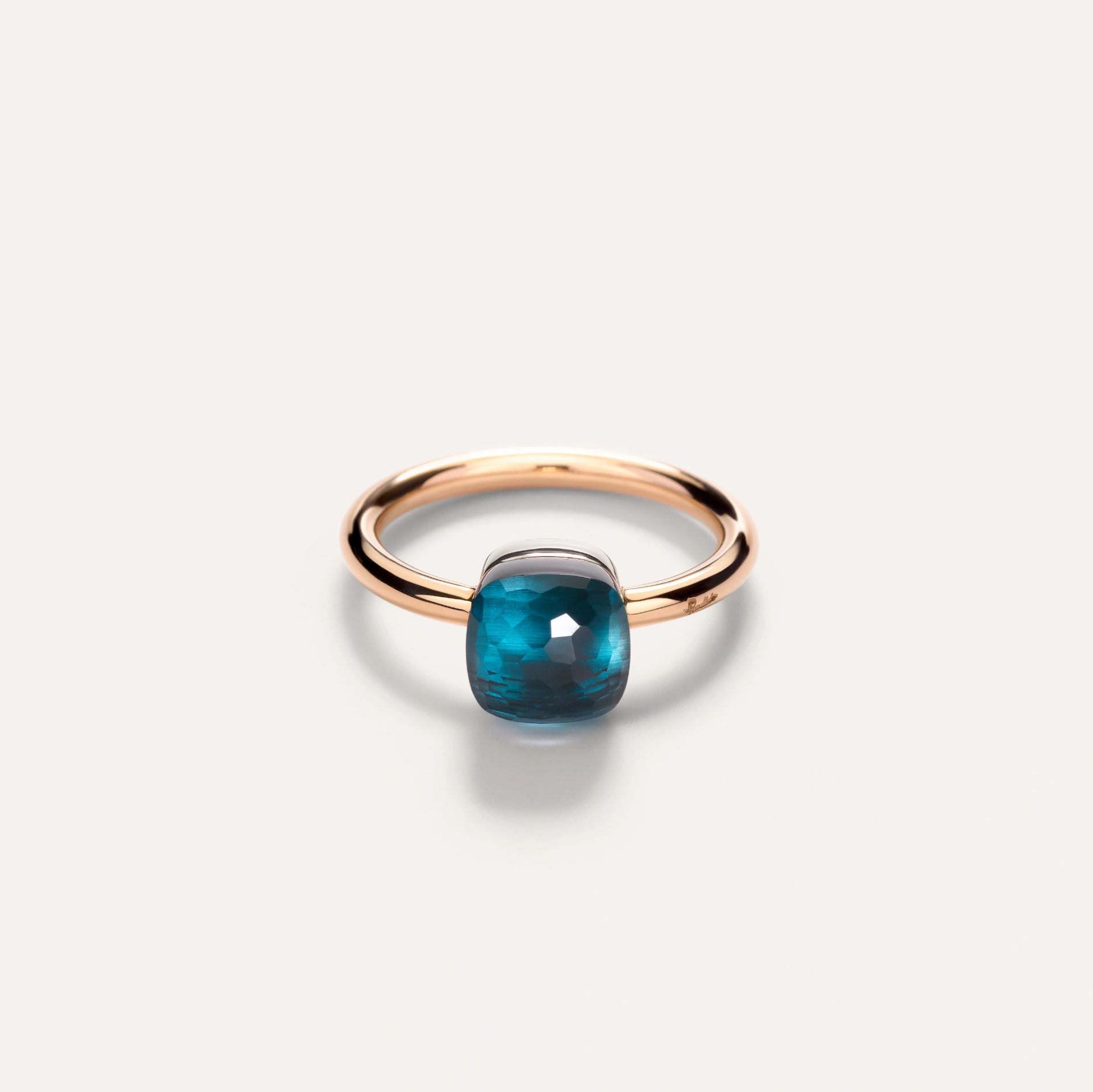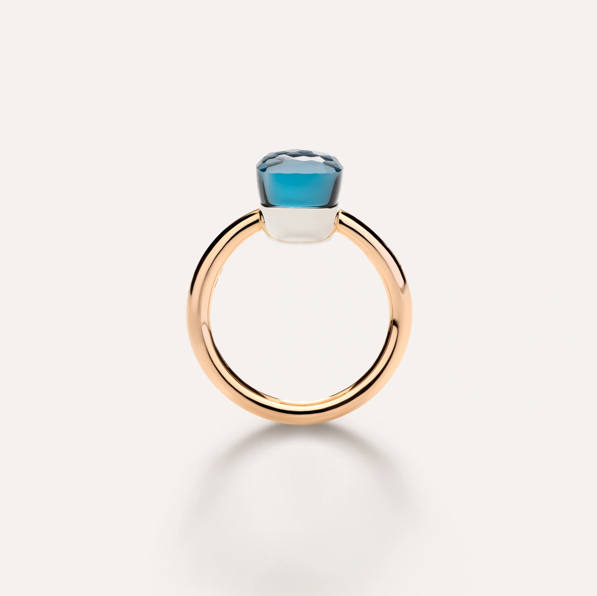 A Pomellato London blue topaz Nudo Petit ring, set in18K white and rose gold.