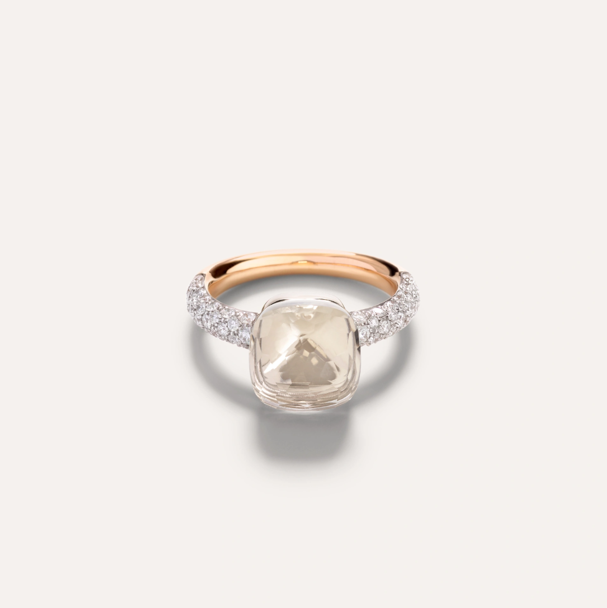 A Pomellato white topaz Nudo Classic ring with diamonds, set in 18K white and rose gold.
