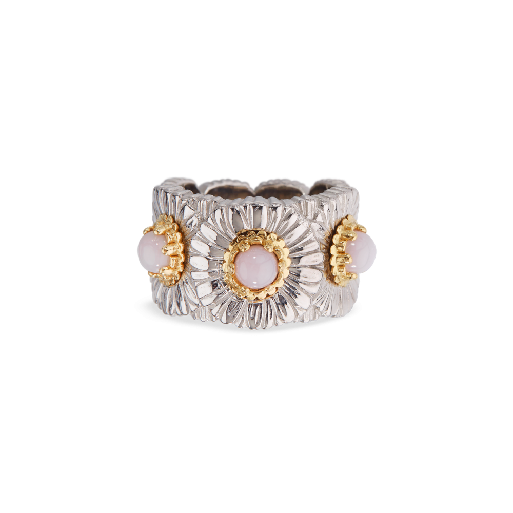 A Buccellati 'Blossom Color' collection sterling silver with gold plated accent daisy eternelle ring with pink opals.Official Retailersize 6