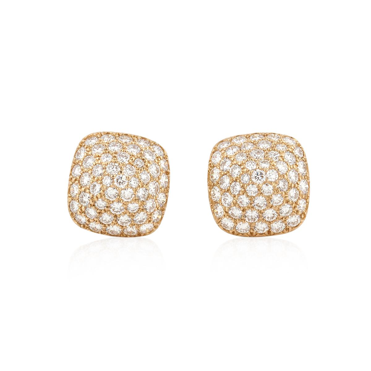 Estate Oscar Heyman 18K Gold Diamond Cushion Shape Dome Earrings