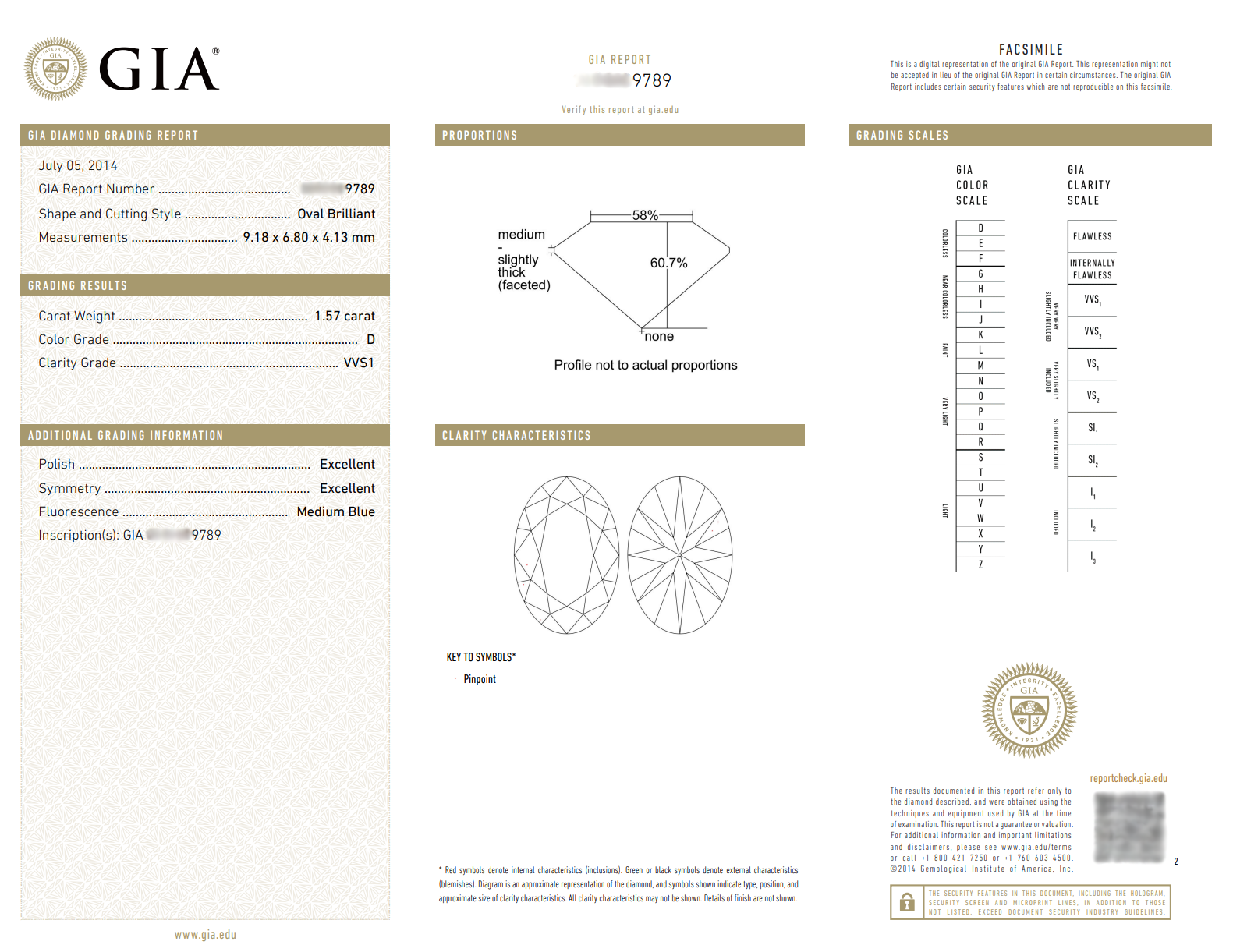 Diamond: 1.57 total carat weight, D color, VVS1 clarity, GIA