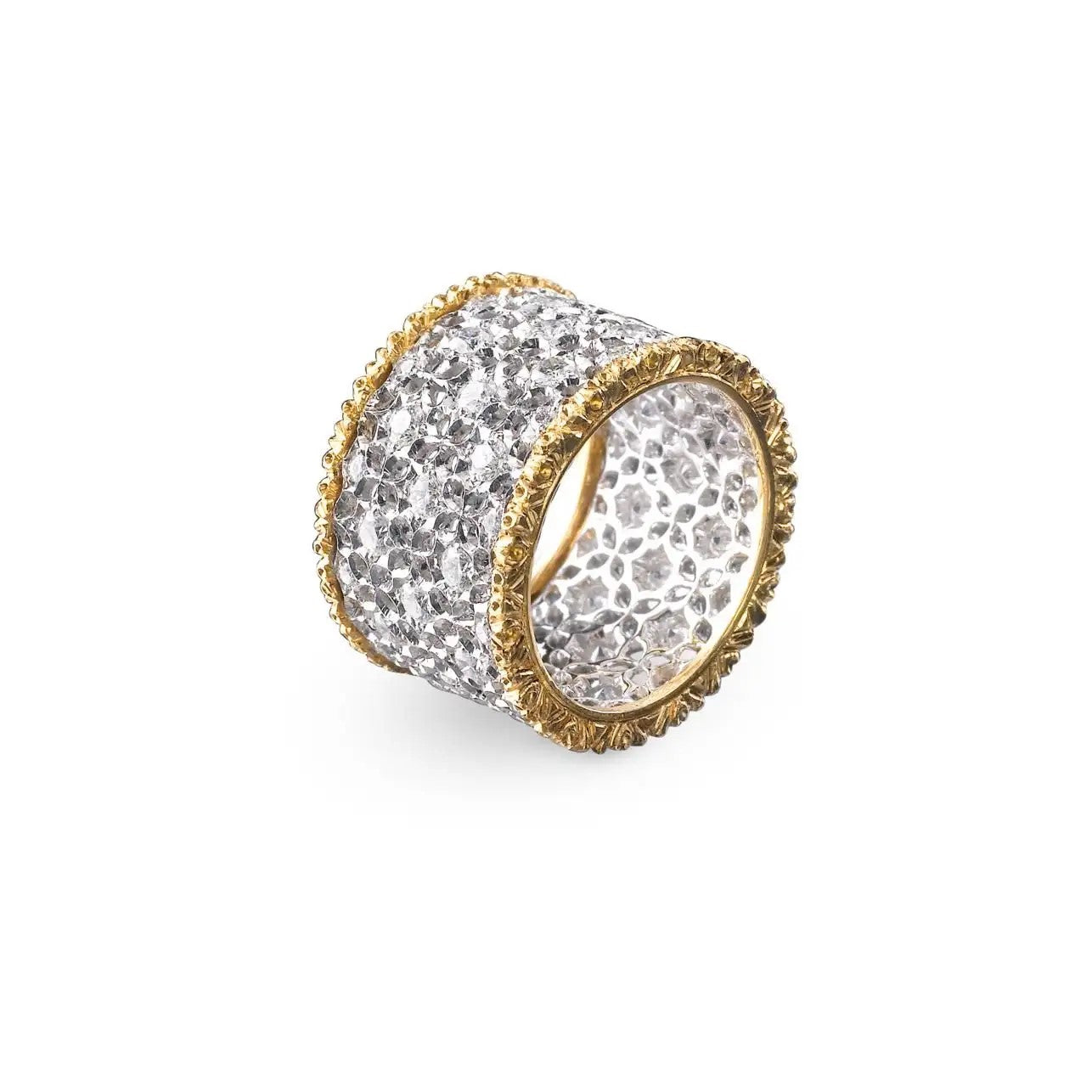 A Buccellati 18K white and yellow gold 'Scacchi Eternelle' band with diamonds.