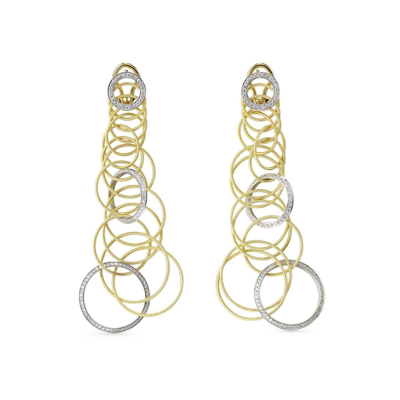 A pair of Buccellati Hawaii circle pendant earrings in 18K yellow gold, with round brilliant-cut diamond links in 18K white gold.Official RetailerDiamonds: 2.24 total carat weight