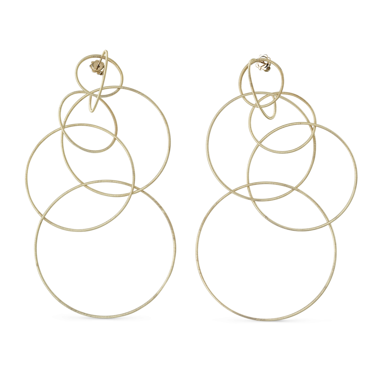 A pair of Buccellati 18K yellow gold Hawaii Waikiki long multi hoop earrings.