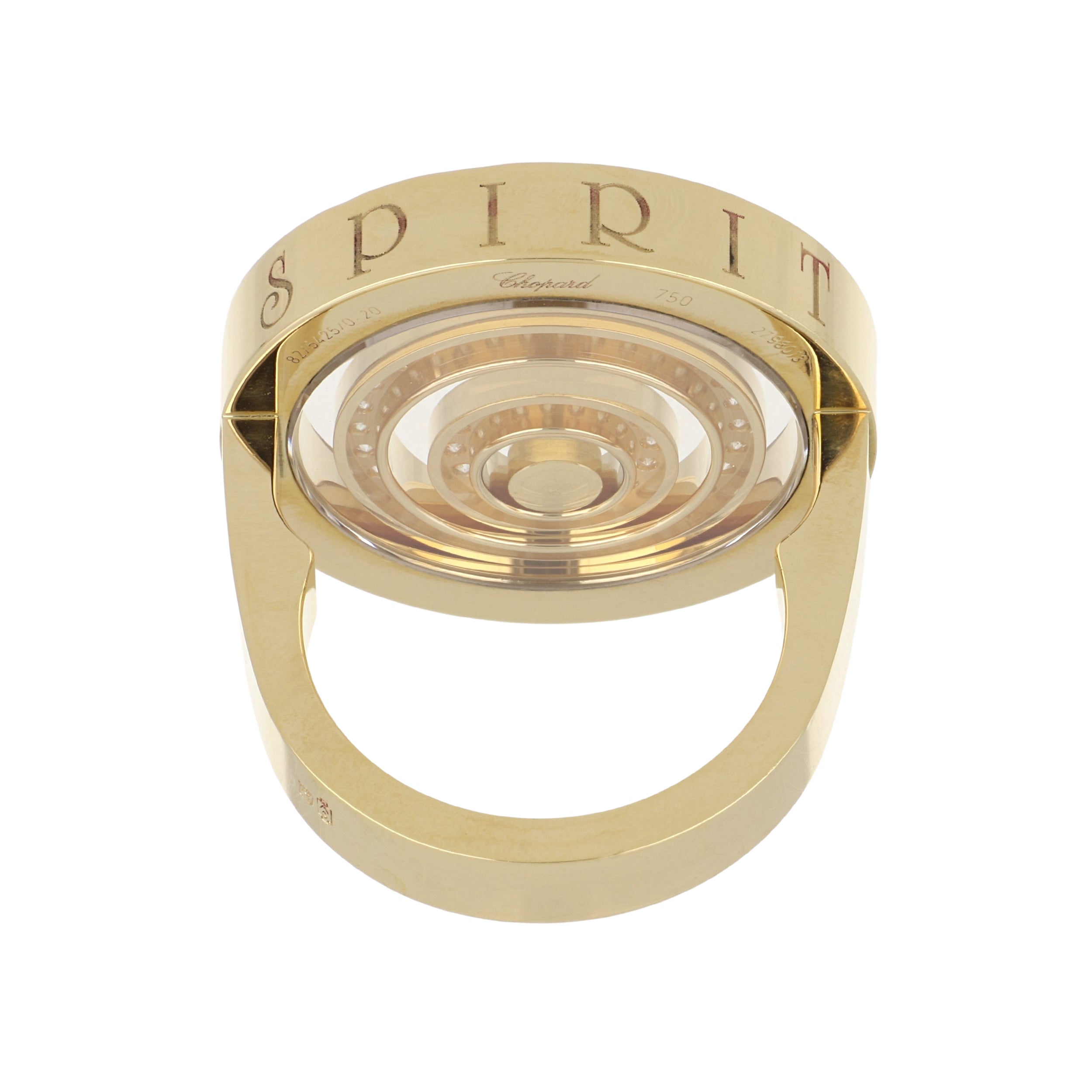 An estate Chopard 18 karat yellow gold happy spirit ring with diamonds. Circa 2010