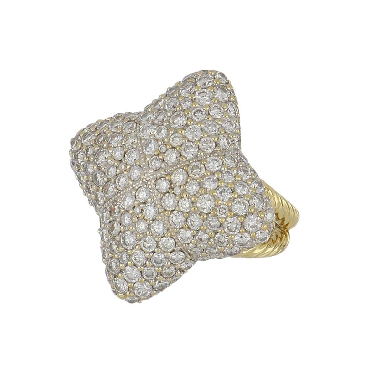 An estate David Yurman18k yellow gold couture quatrefoil diamond ring. Circa 2010.