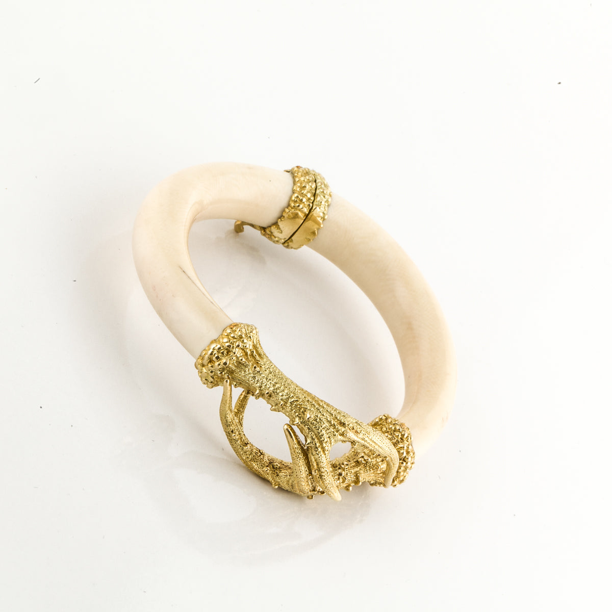 An estate French bone antler bracelet, set in 18K yellow gold.