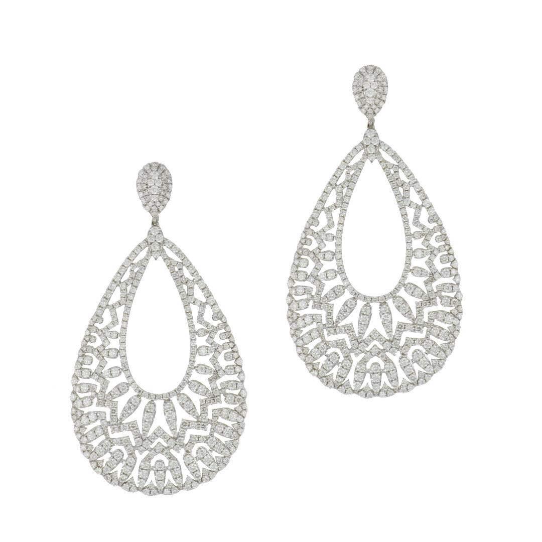 Estate Classic 18K White Gold Diamond Drop Earrings
