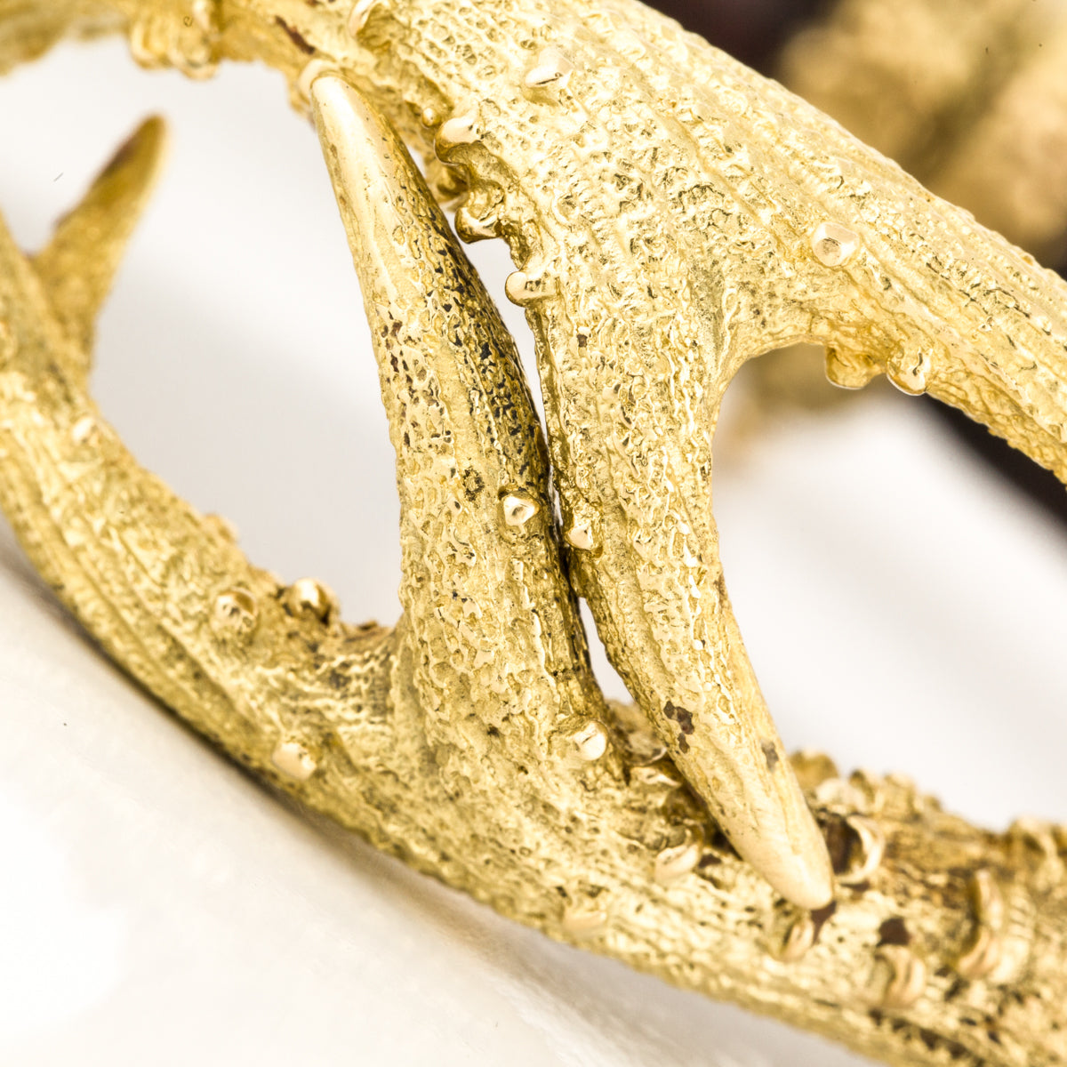 A French estate wooden bracelet with 18K yellow gold antlers.Vintage & Estate Collection