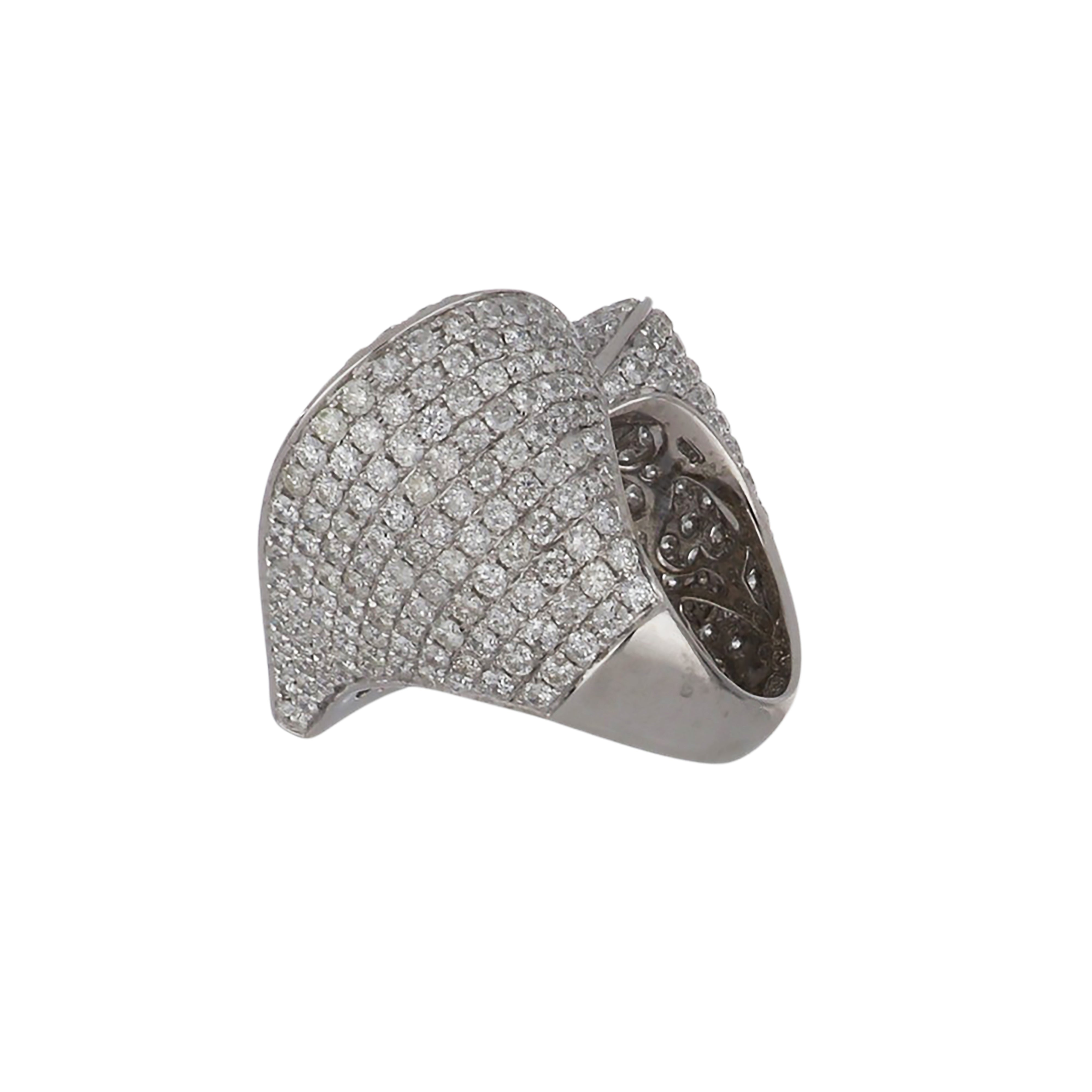 An estate M. Christoff heart shaped ring with pave round-cut diamonds, set in 18K white gold.