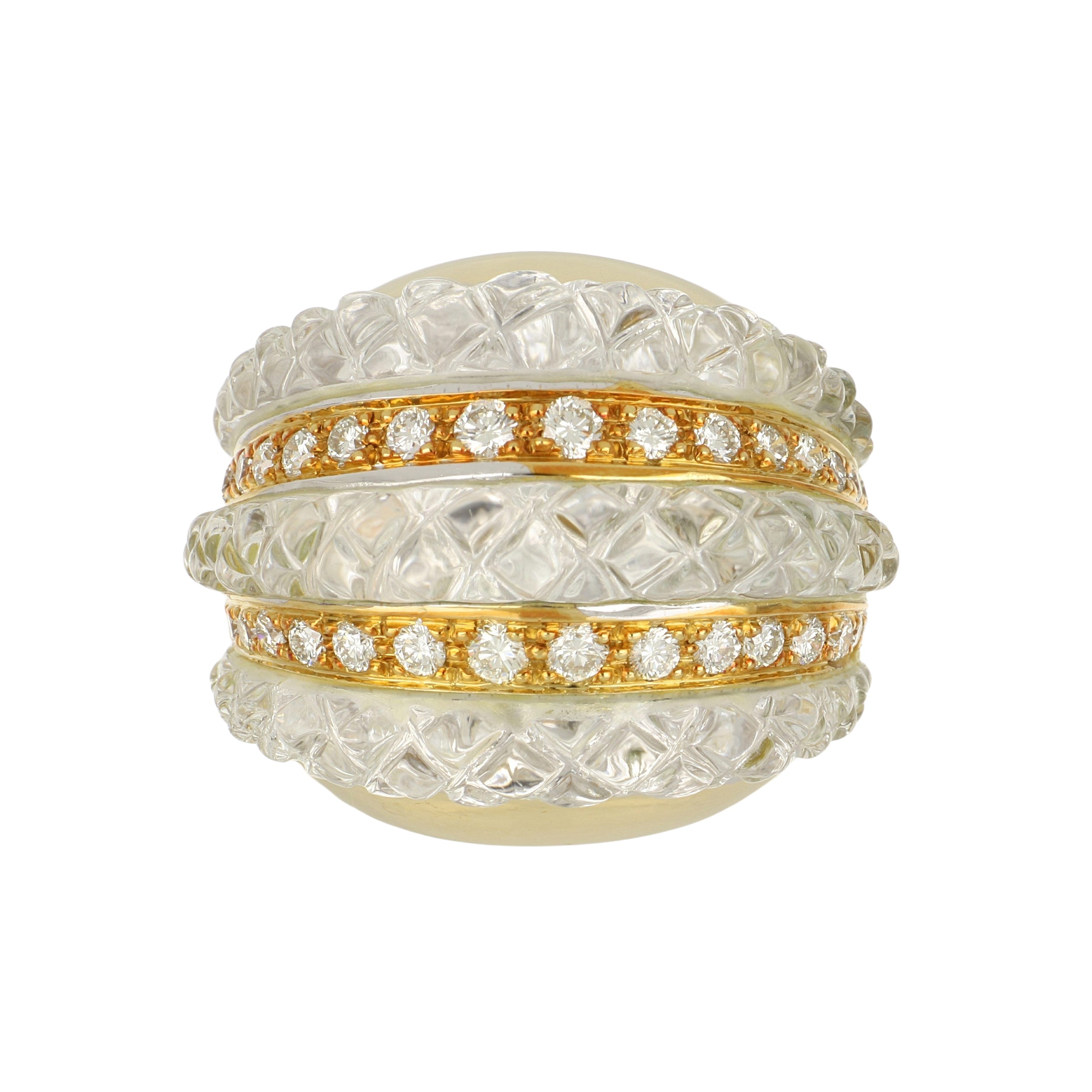 A vintage, Sabbadini, carved rock crystal and round brilliant-cut diamond five row band, set in 18K yellow gold. Signed: Sabbadini Italy, circa 1980.