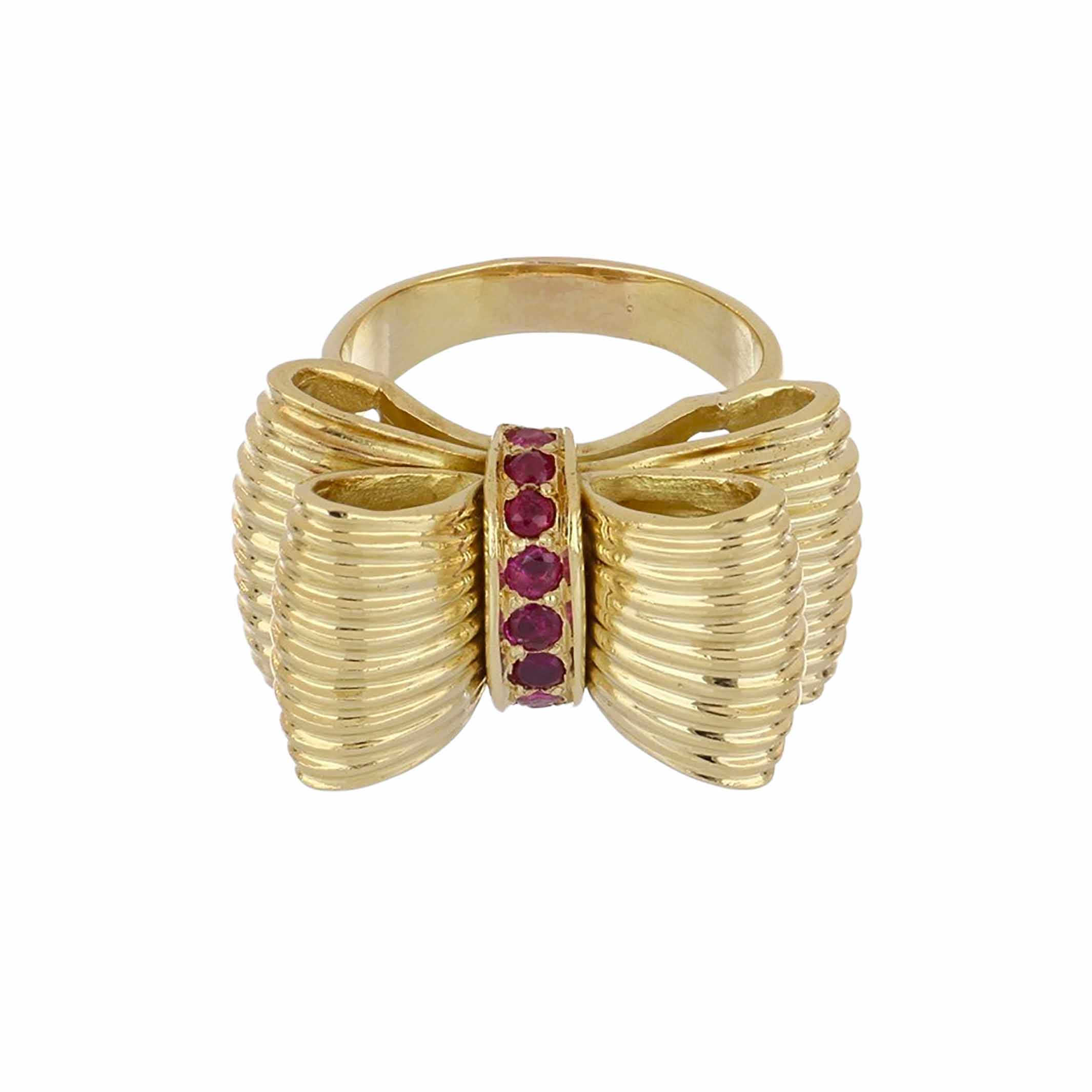 Vintage Tiffany & Co. 18K Gold Ribbon Ring with Rubies