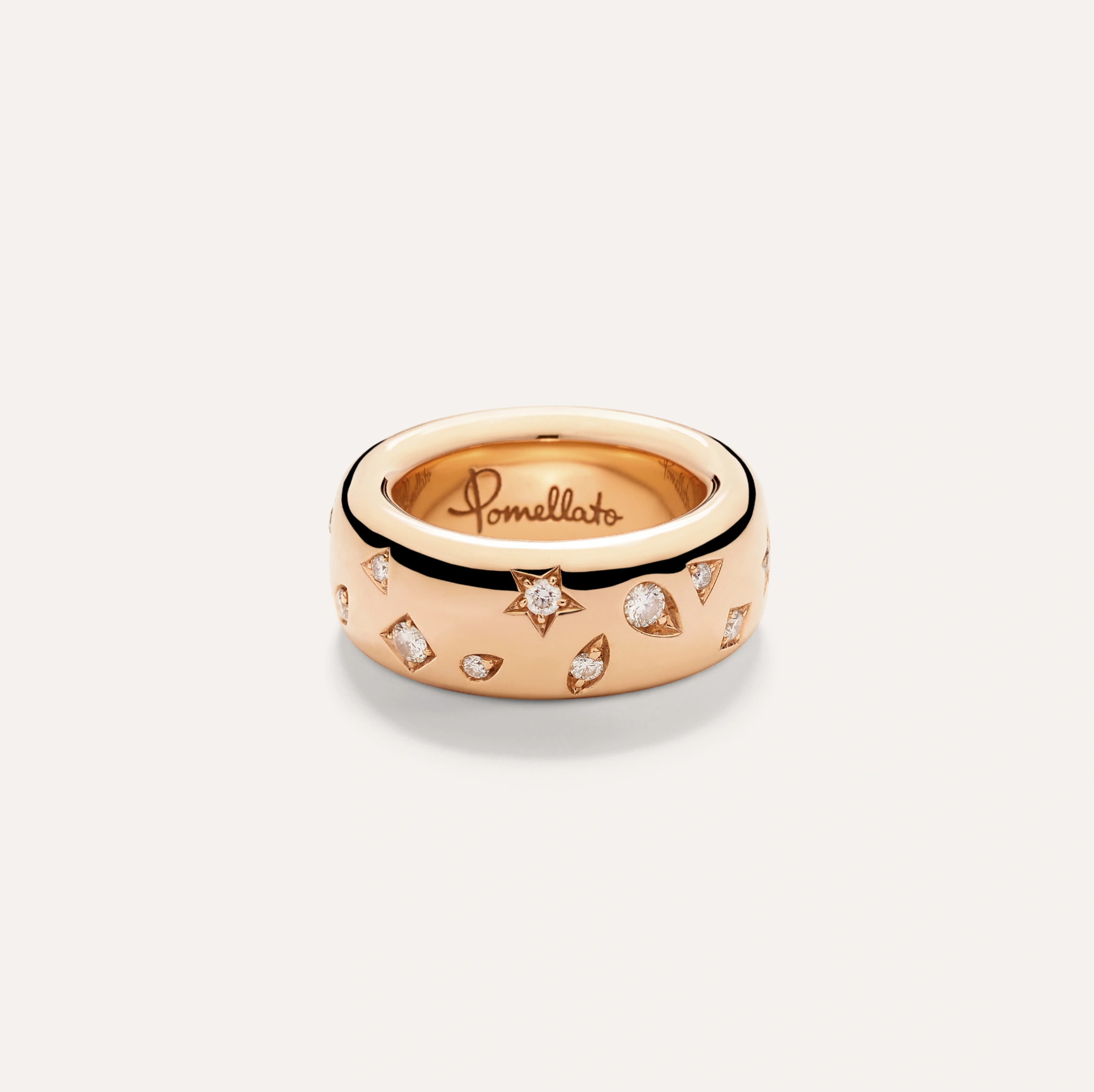 A Pomellato Iconica medium ring with inlaid diamonds, set in 18K rose gold.
