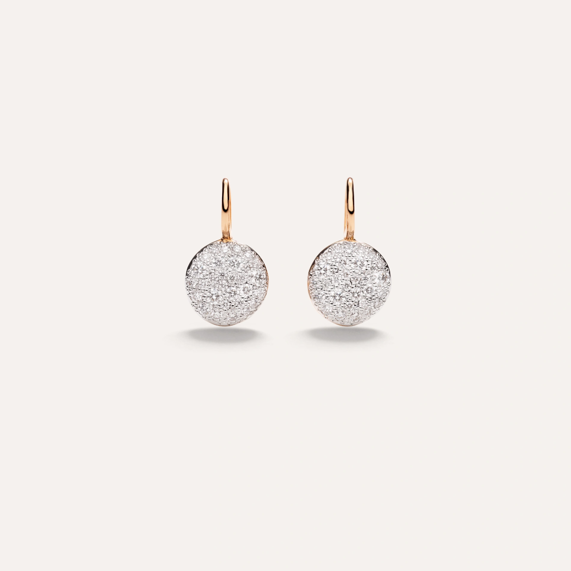 A pair of Pomellato pave diamond Sabbia drop earrings, set in 18K white and rose gold.