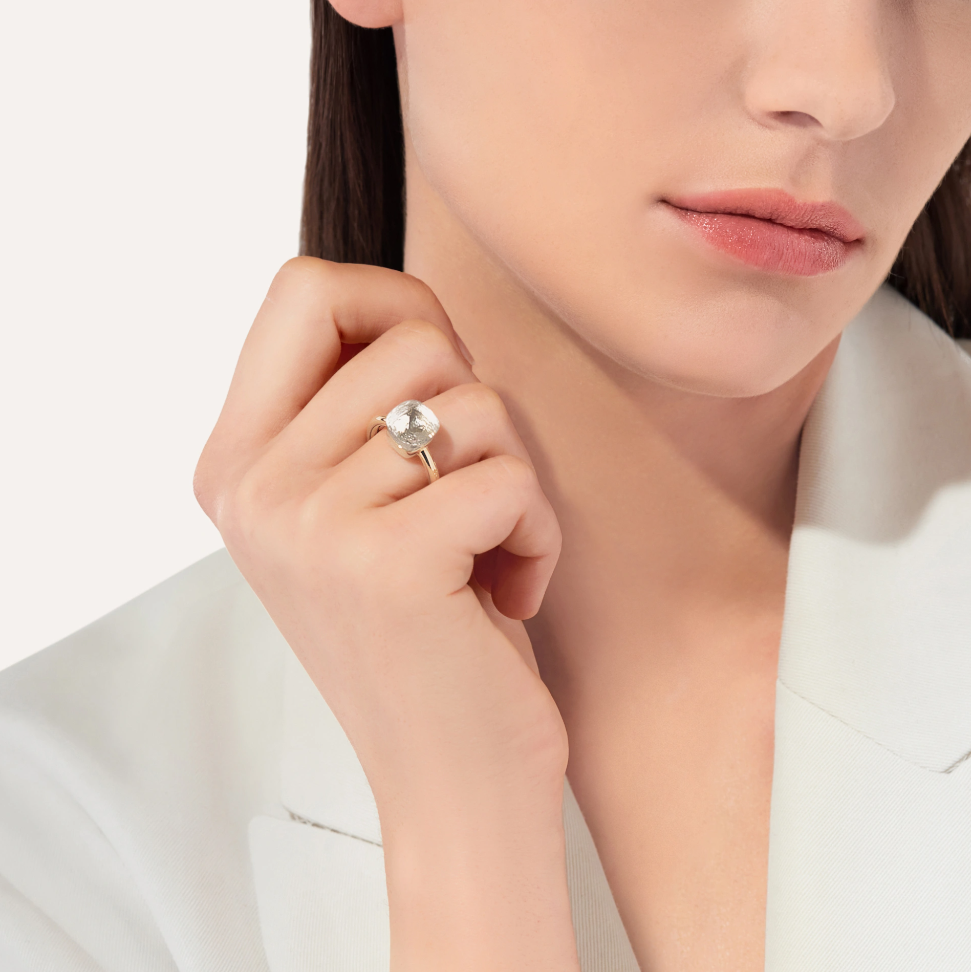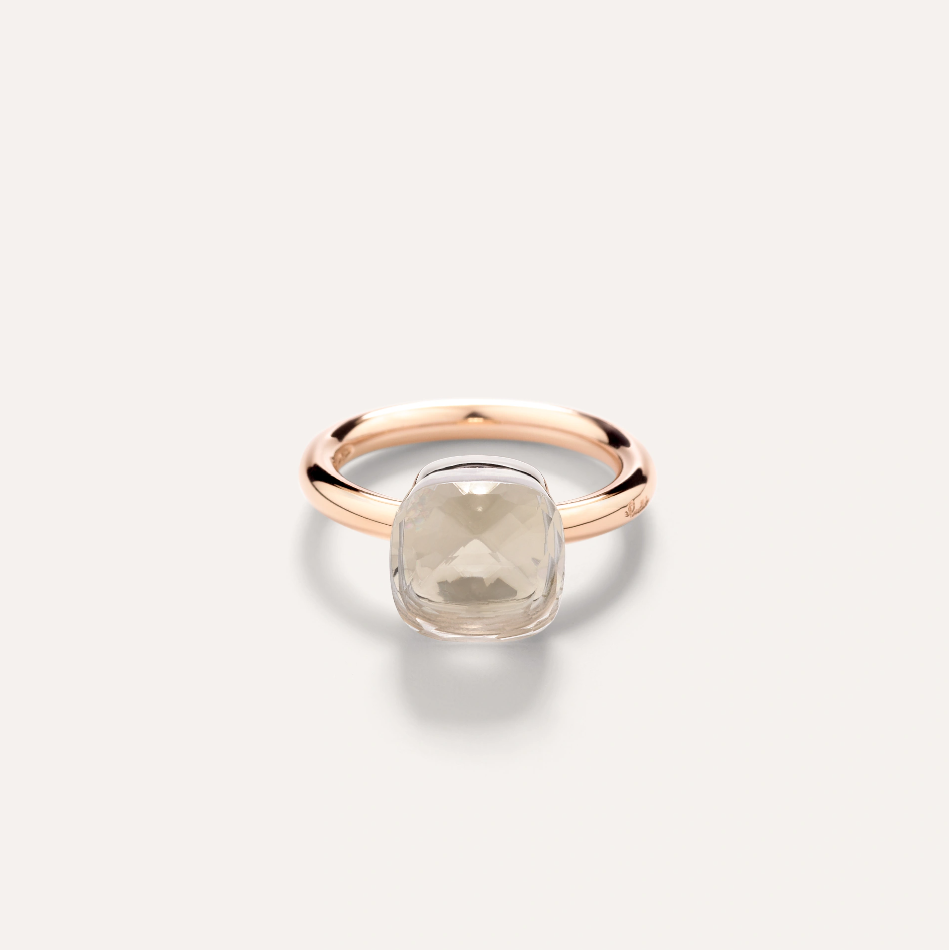 A Pomellato Nudo Classic white topaz ring, set in 18K white and rose gold.