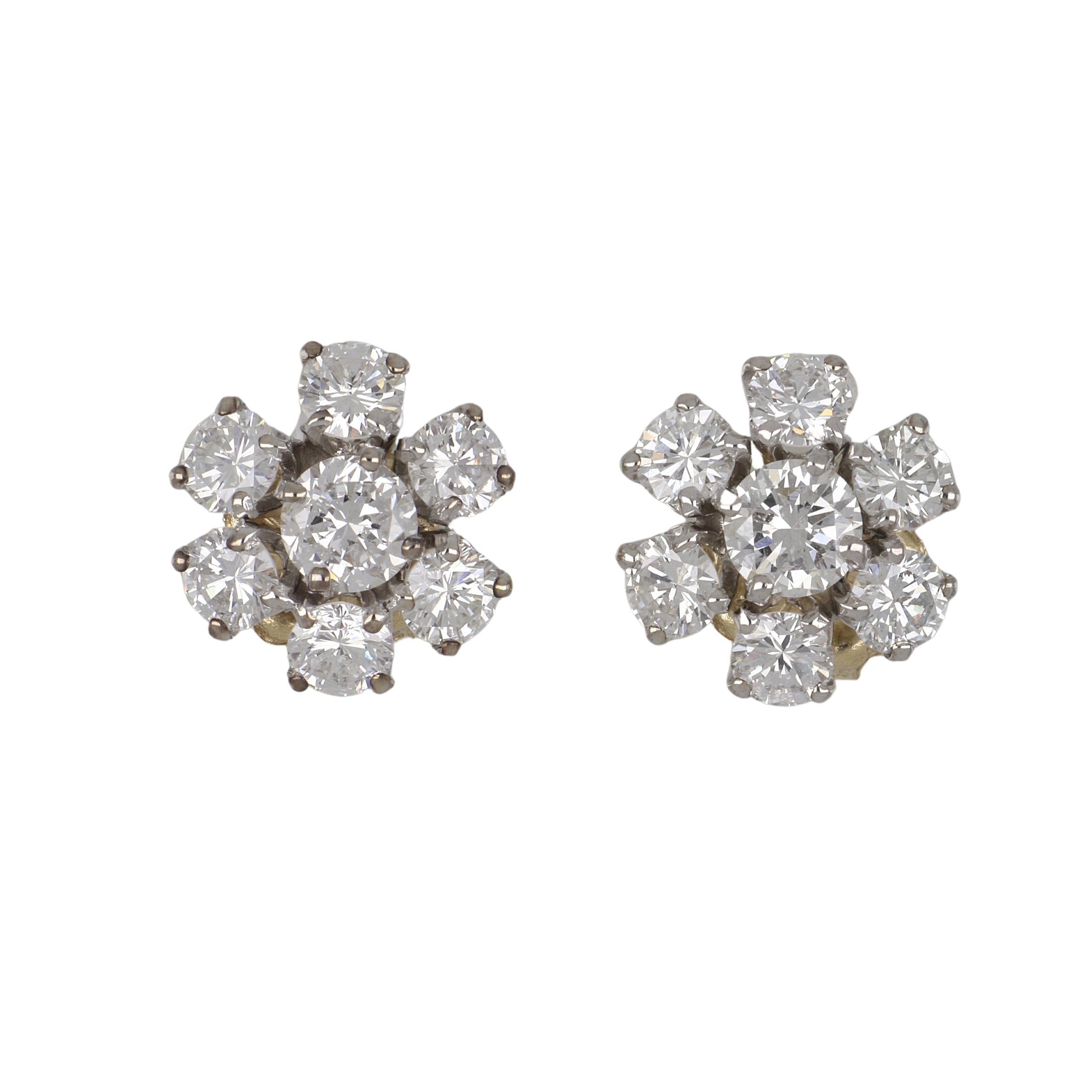 A pair of stud earrings crafted from Retro round brilliant-cut diamond clusters, set in 18K white gold. Clusters circa 1940.
