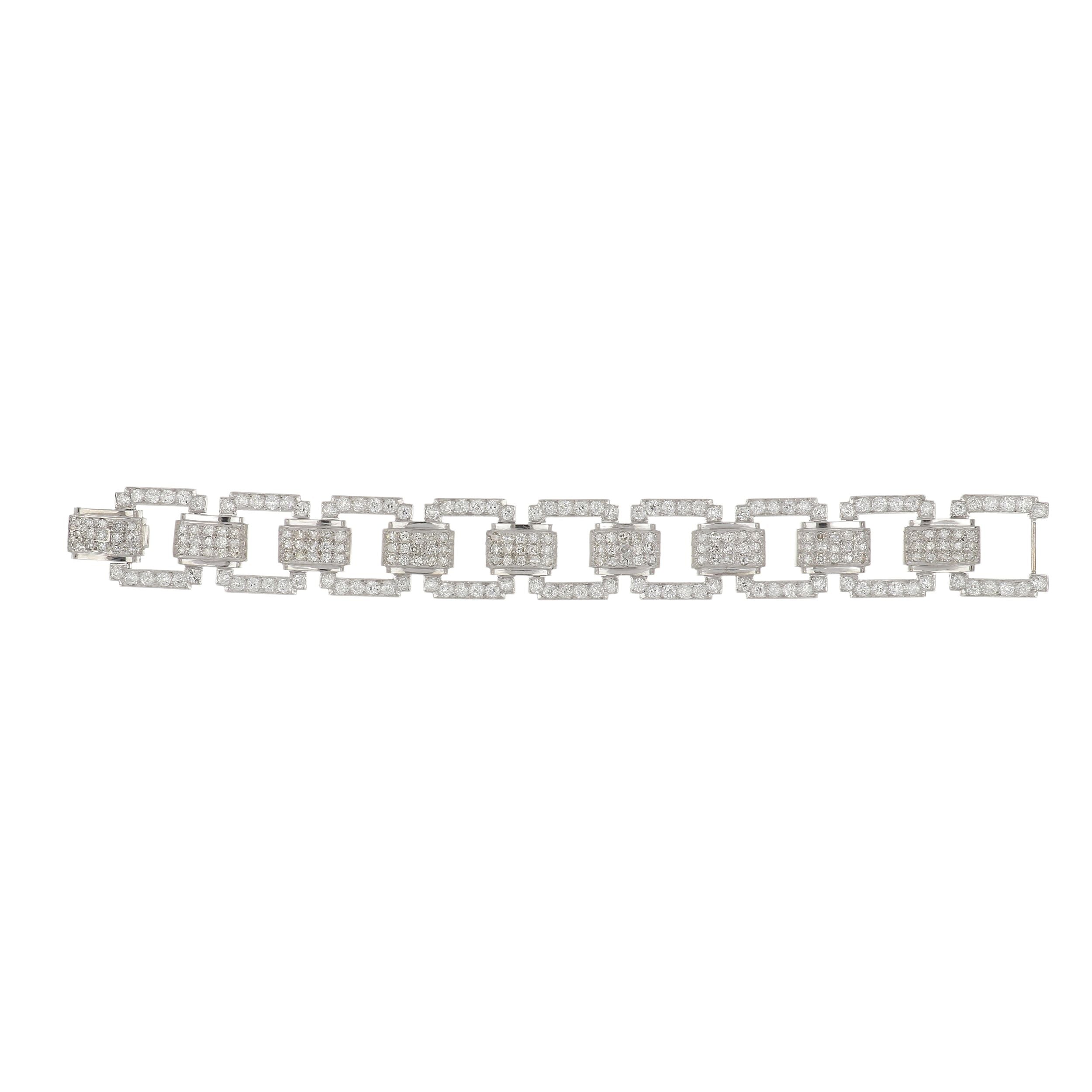 Retro 1940s 18K White Gold Diamond Squared Link Bracelet