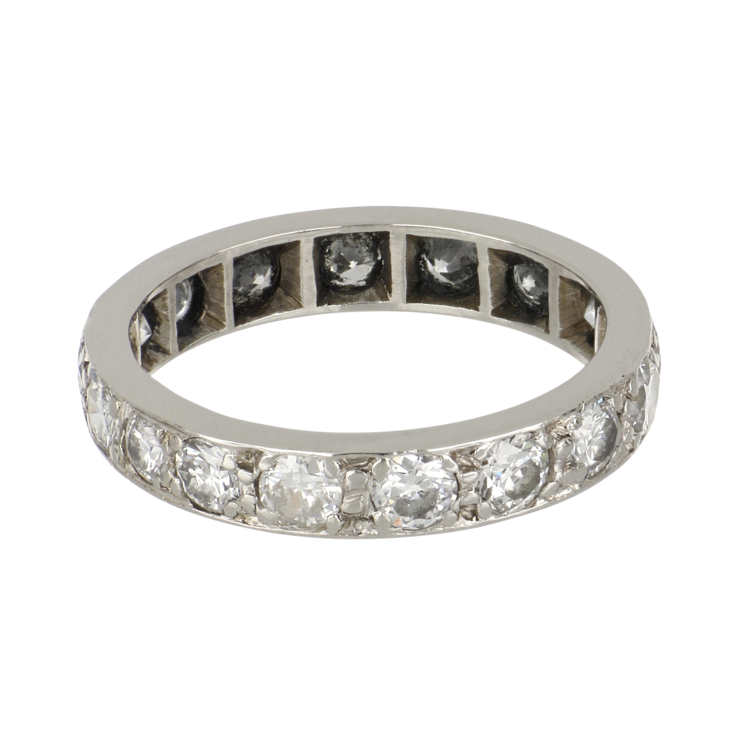 An Art Deco prong-set round brilliant-cut diamond eternity band, set in platinum. Circa 1930.