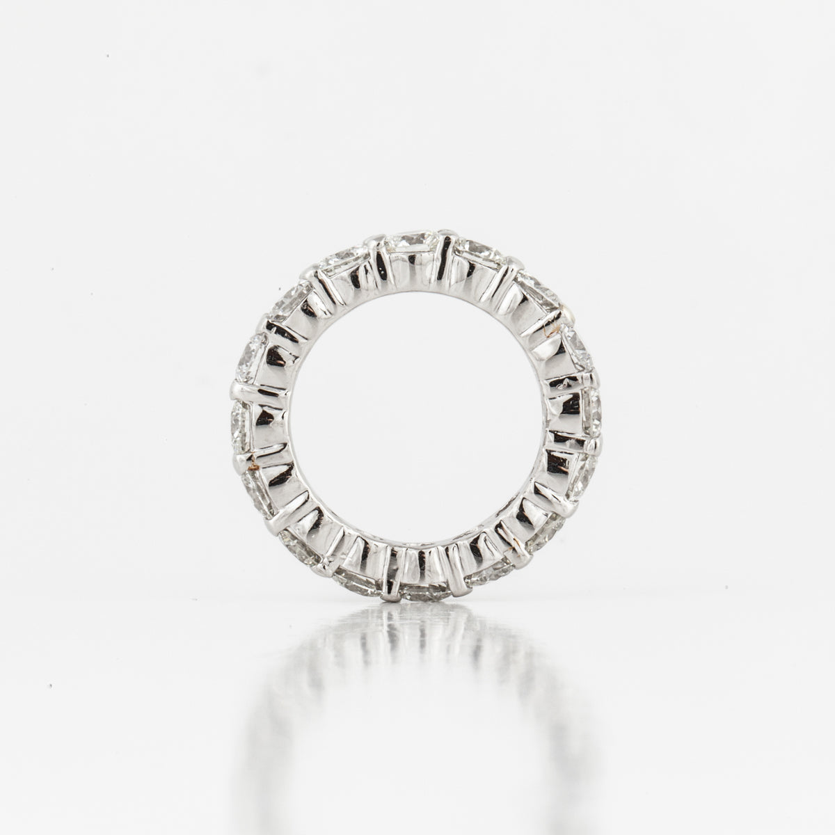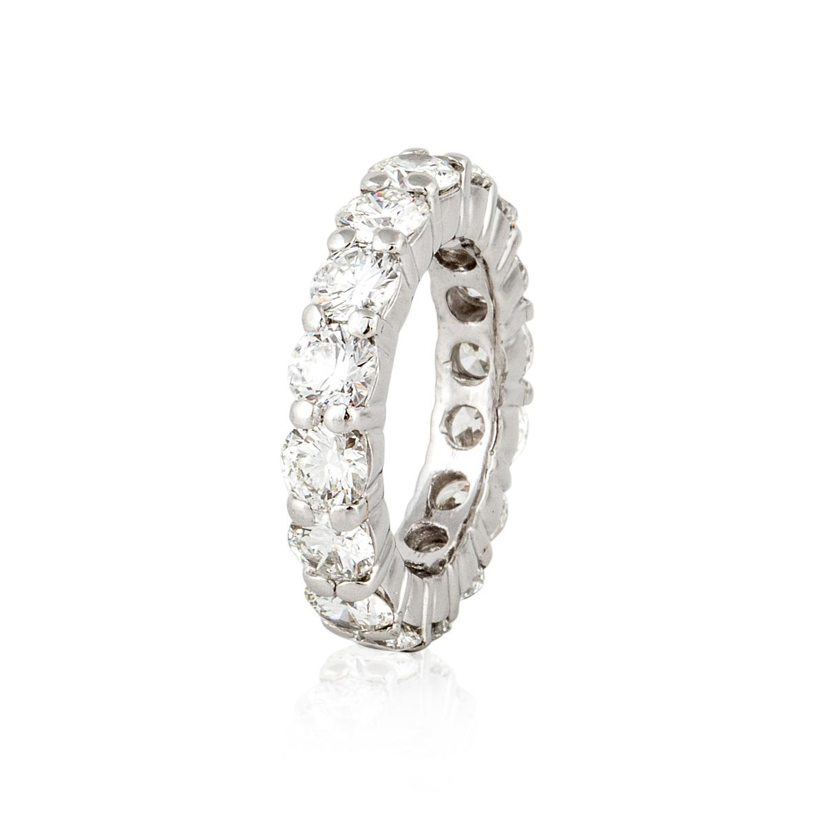 A vintage shared-prong round brilliant-cut diamond eternity band,set in platinum. Circa 1990.