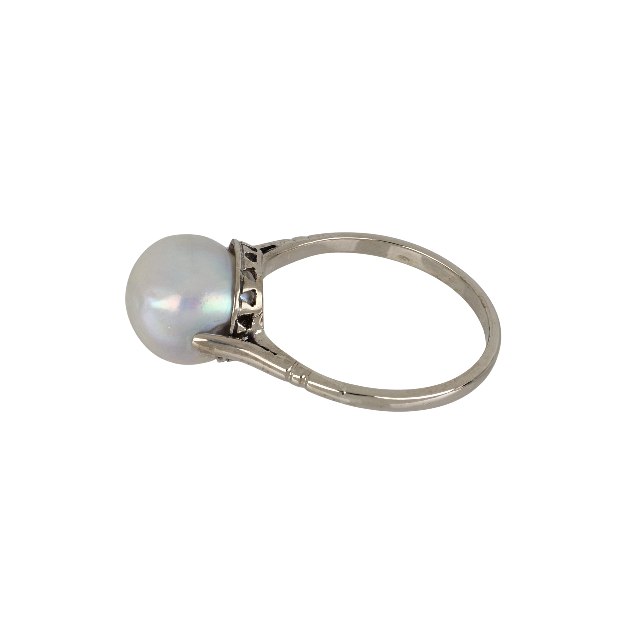 An Art-Deco baroque cultured saltwater Akoya pearl solitaire ring, set in 14K white gold. Circa 1920.