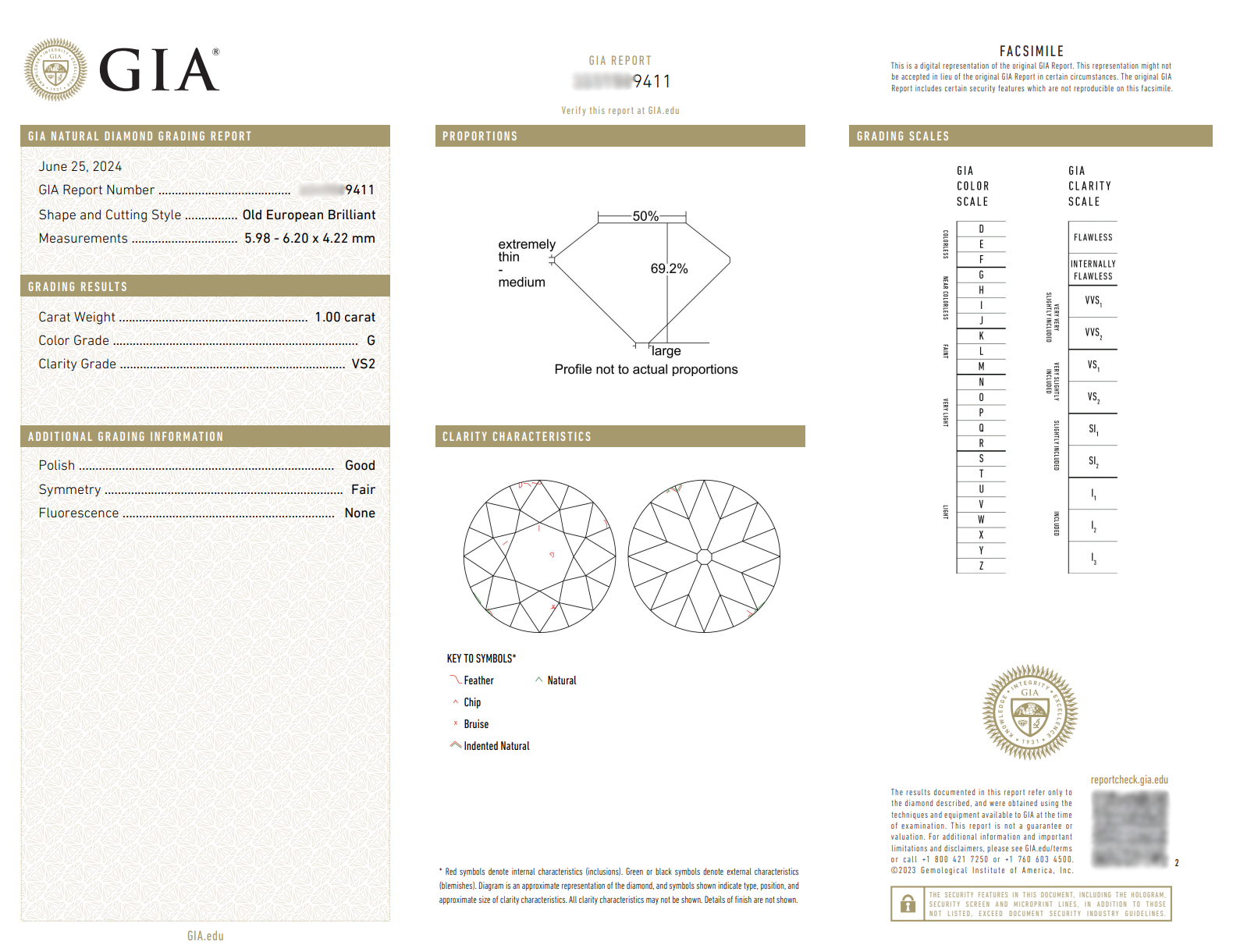 Center diamond: 1.00 total carat weight, G color, VS2 clarity, GIA