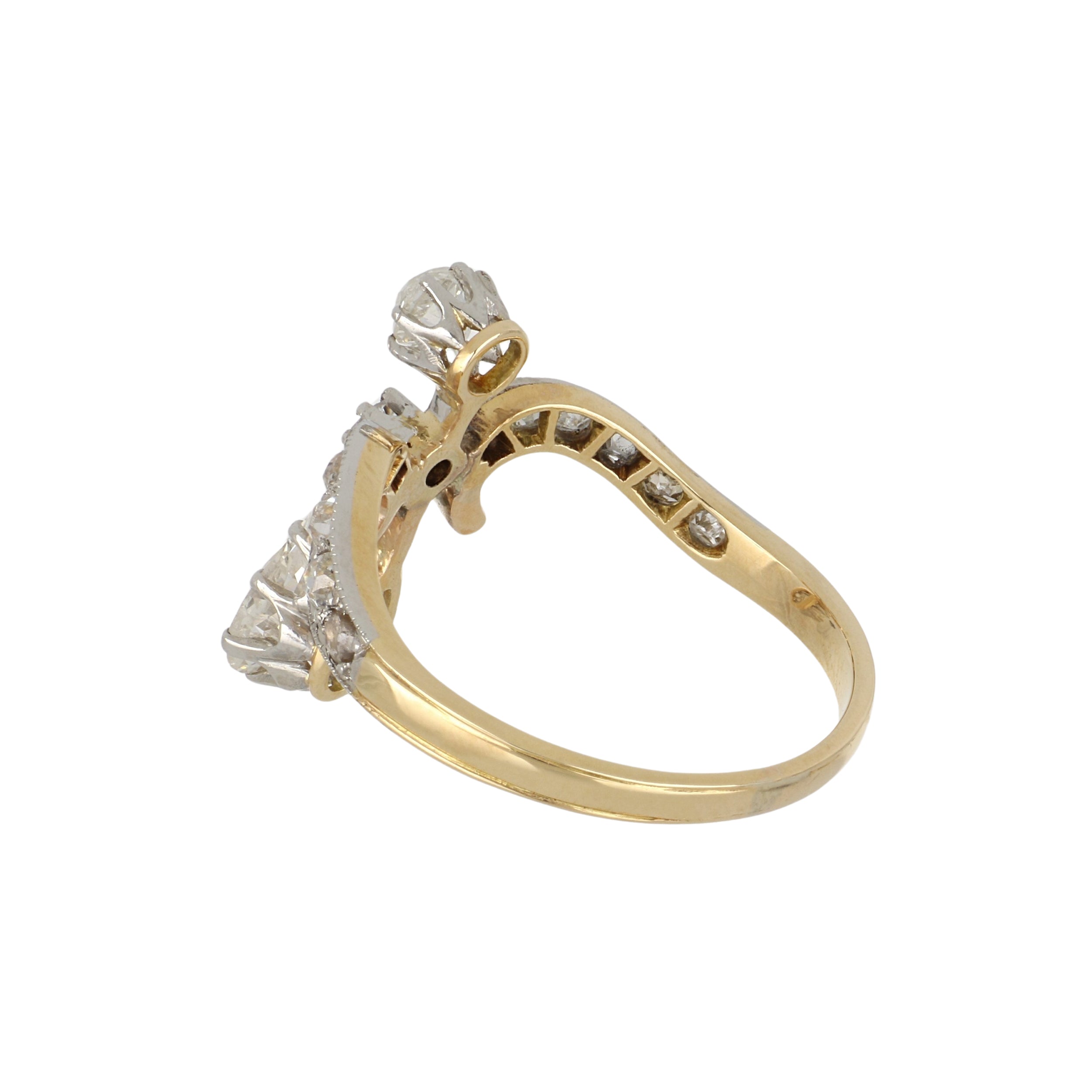 A Belle Epoque antique pear shape diamond tiara ring with Old Mine-cut diamond accents, set in 18K yellow gold & platinum. Circa 1890.