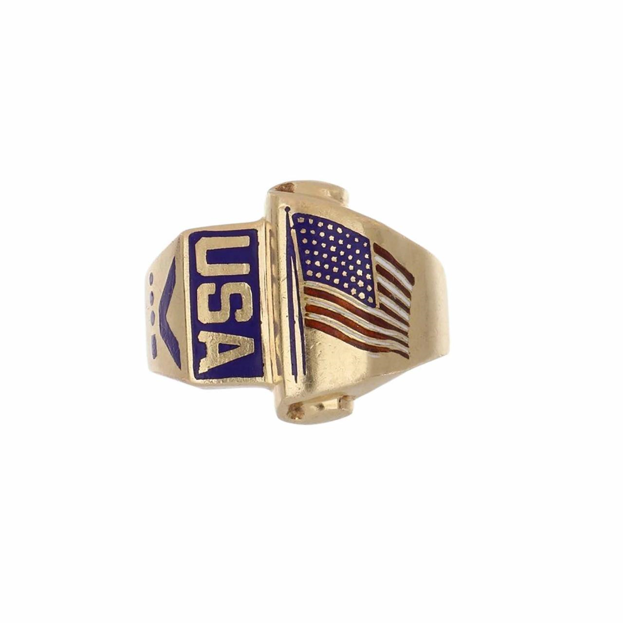 Retro Important 14K Yellow Gold American Flag Victory Ring with Enamel c1945