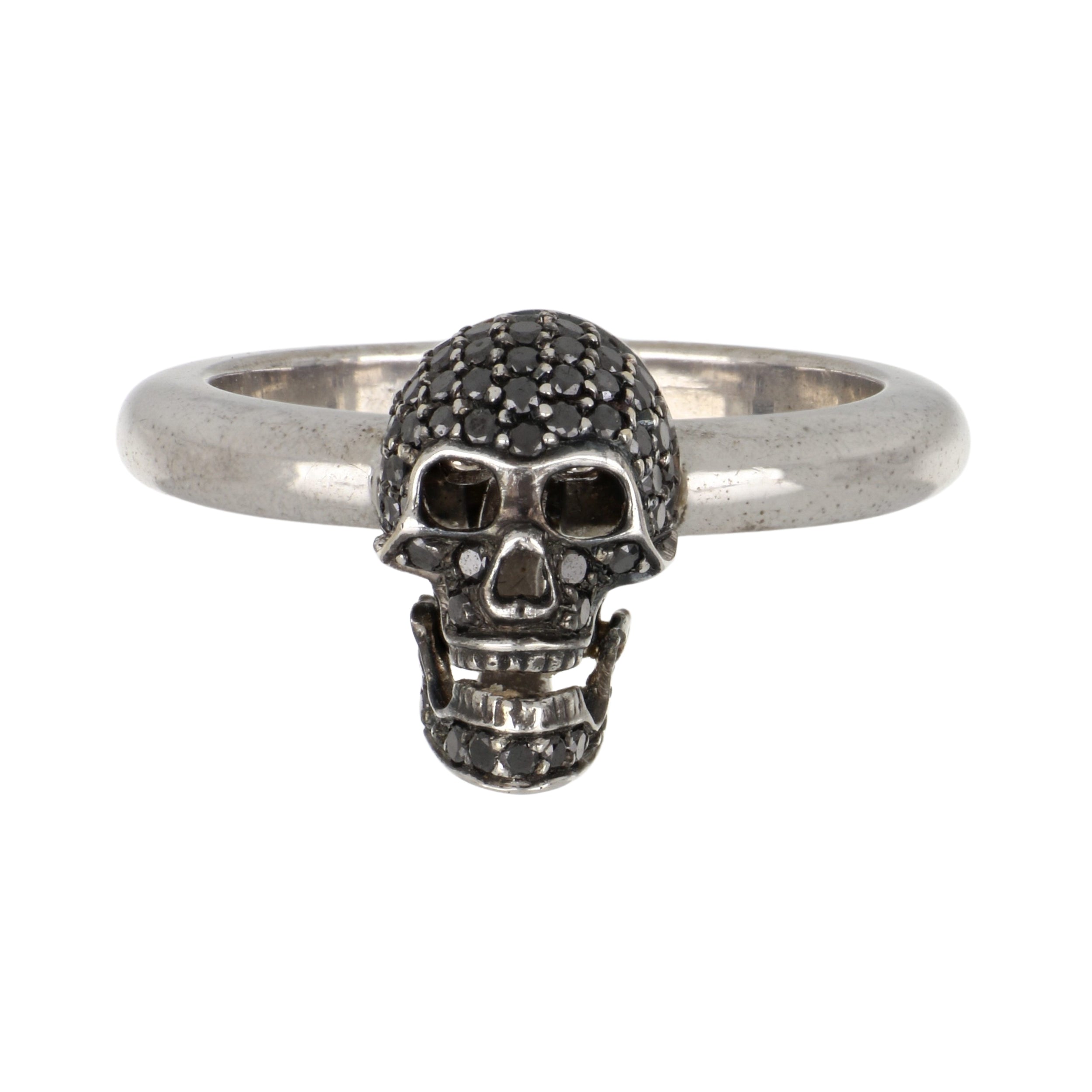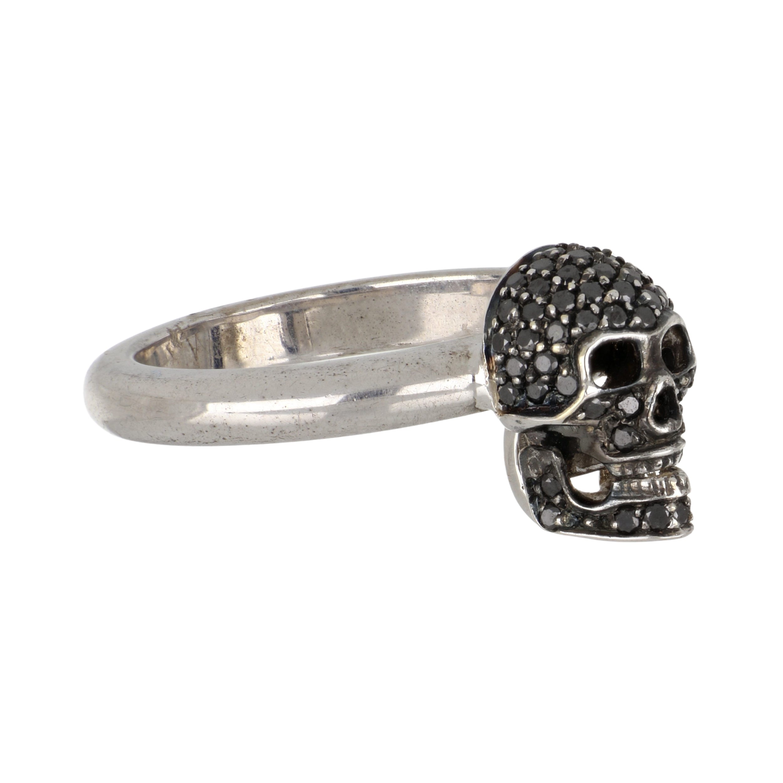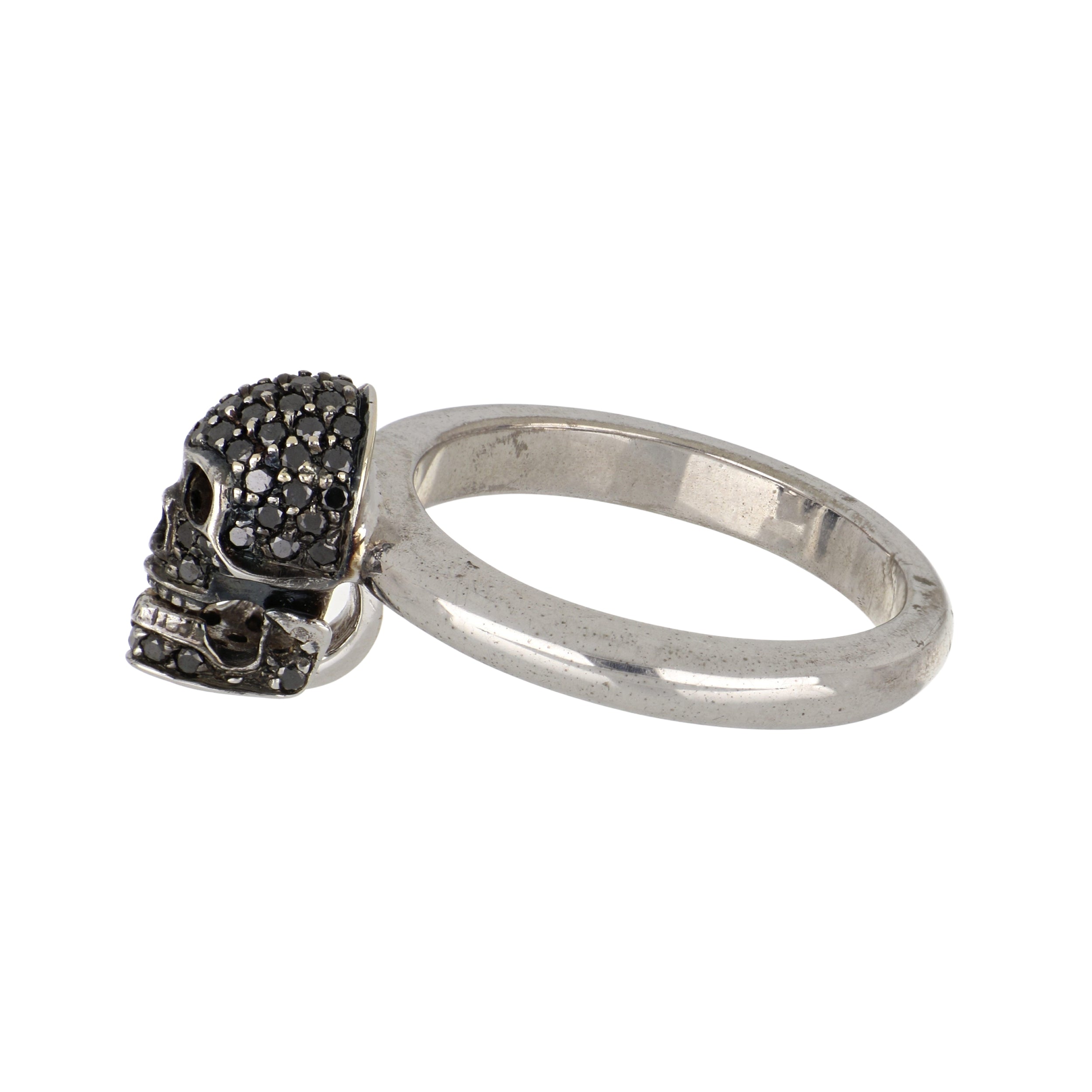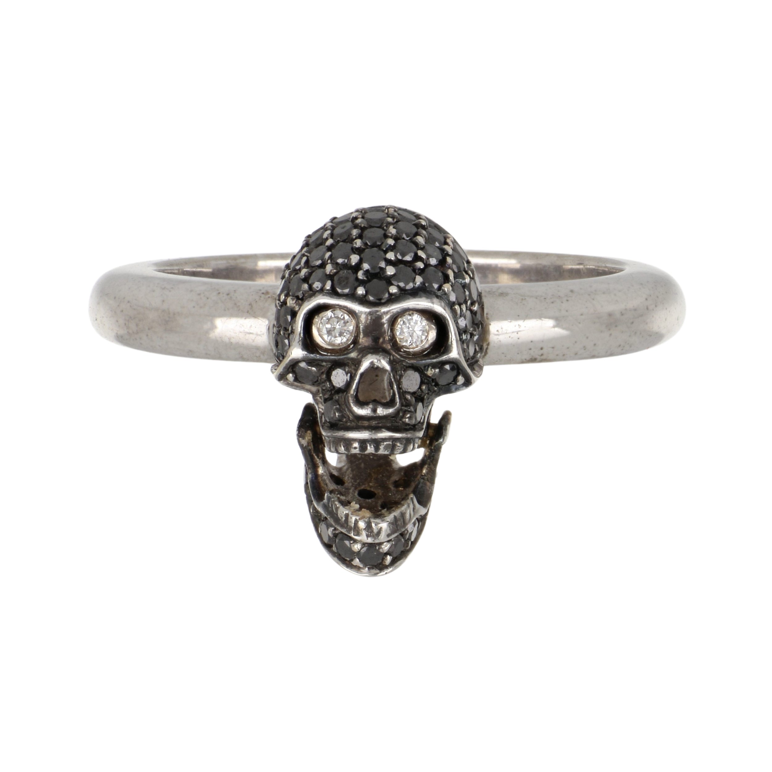 A Deakin & Francis black spinel skull ring with diamond eyes set in sterling silver and 18K white gold,