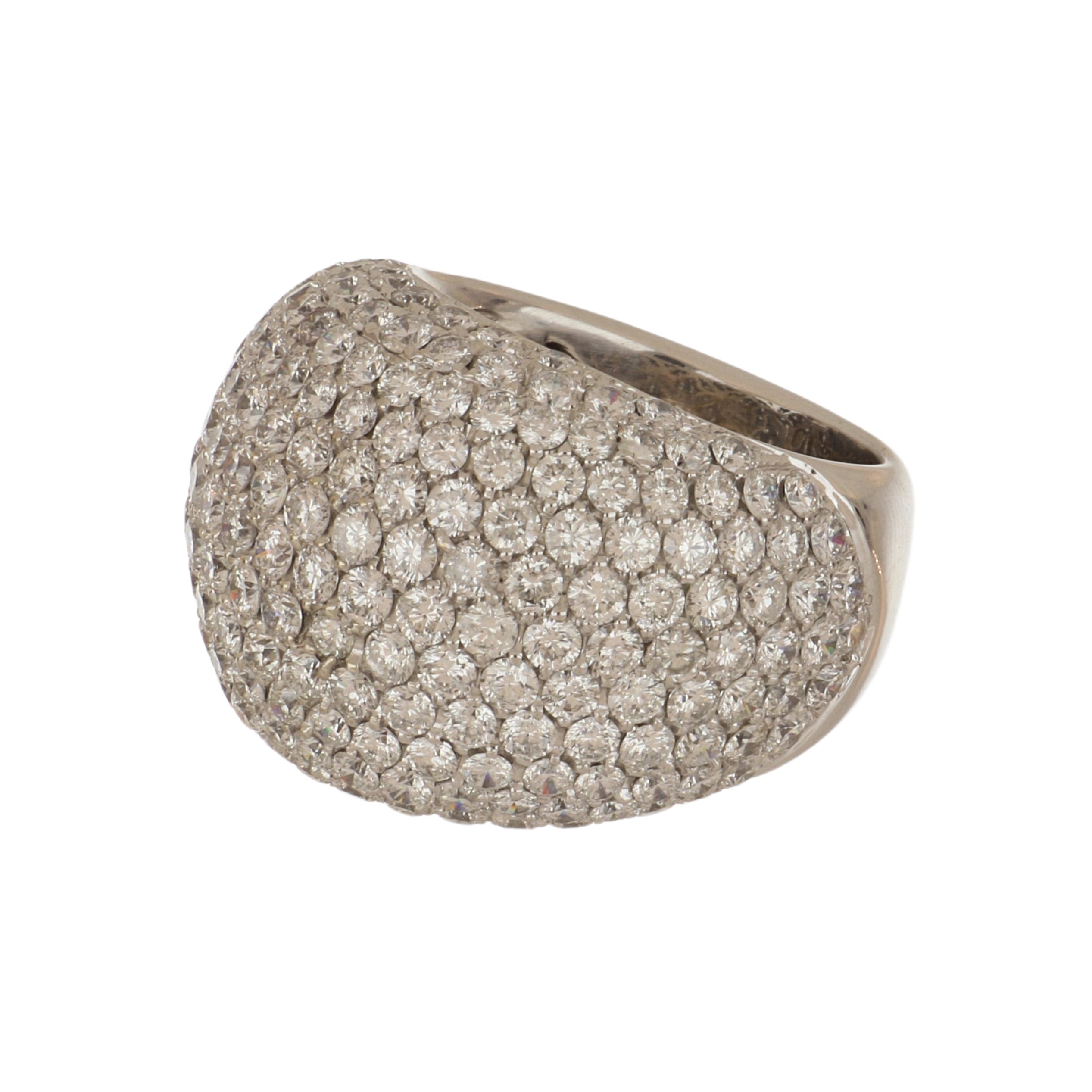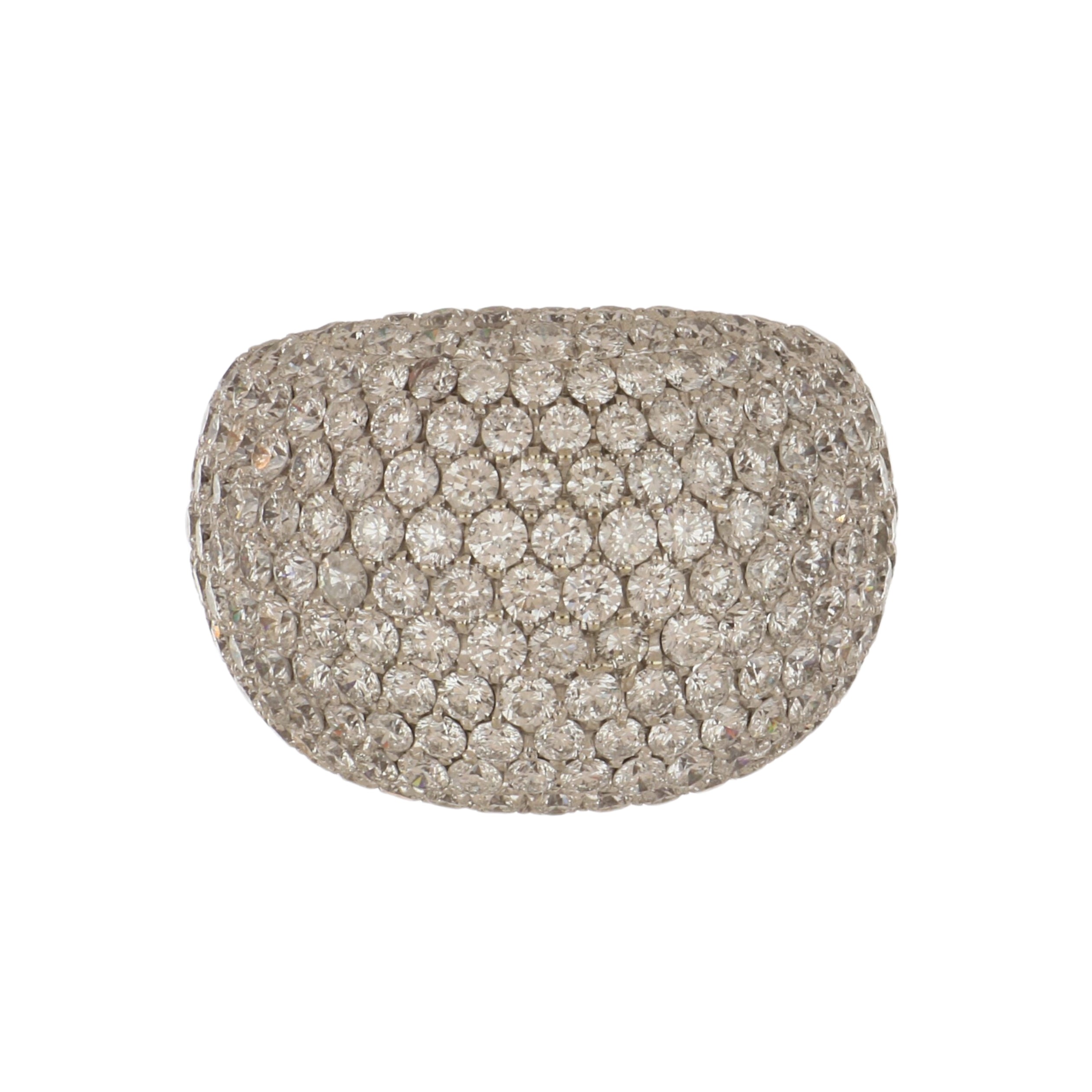 An estate modern, domed pave-set round brilliant-cut diamond ring set in 14k white gold. Circa 2000.