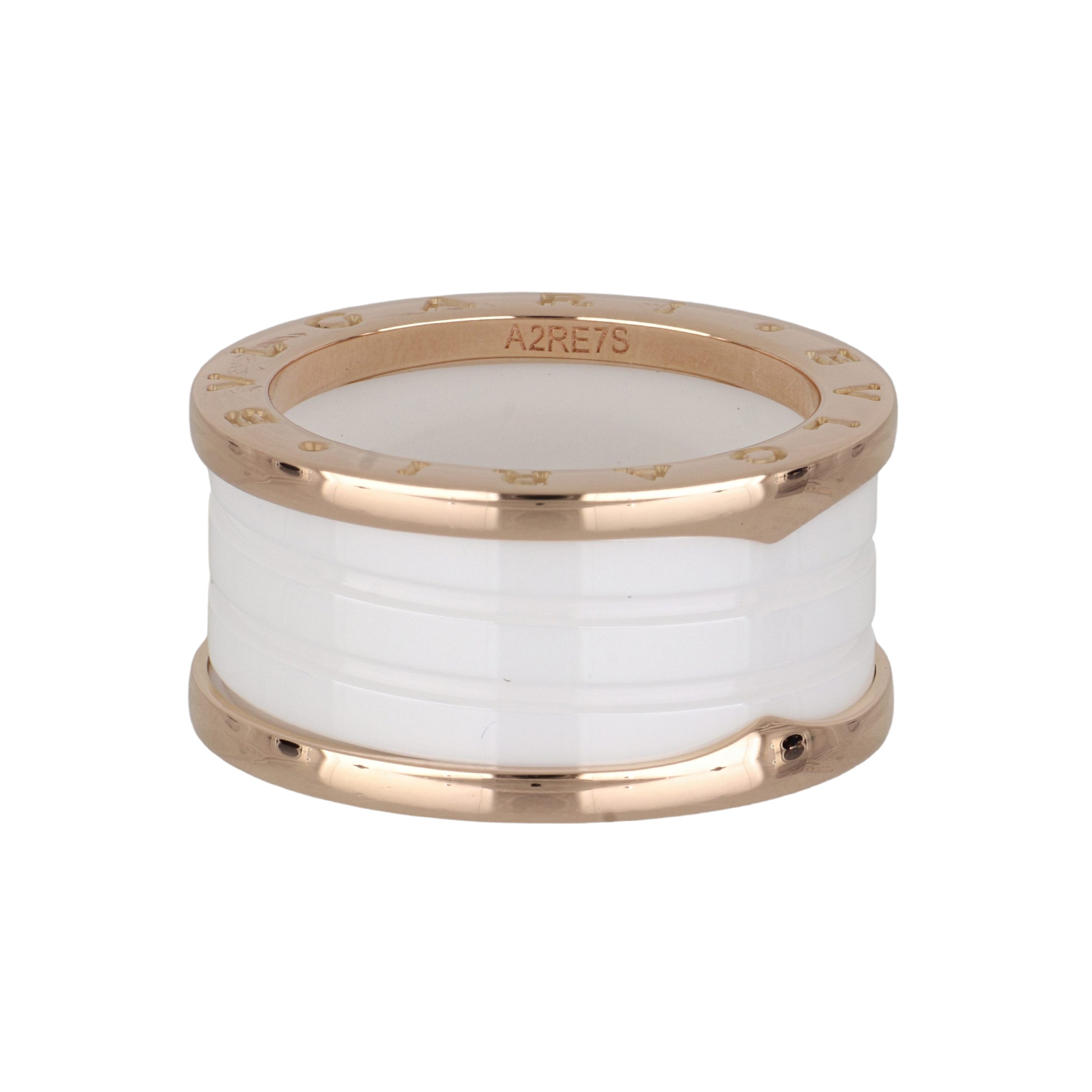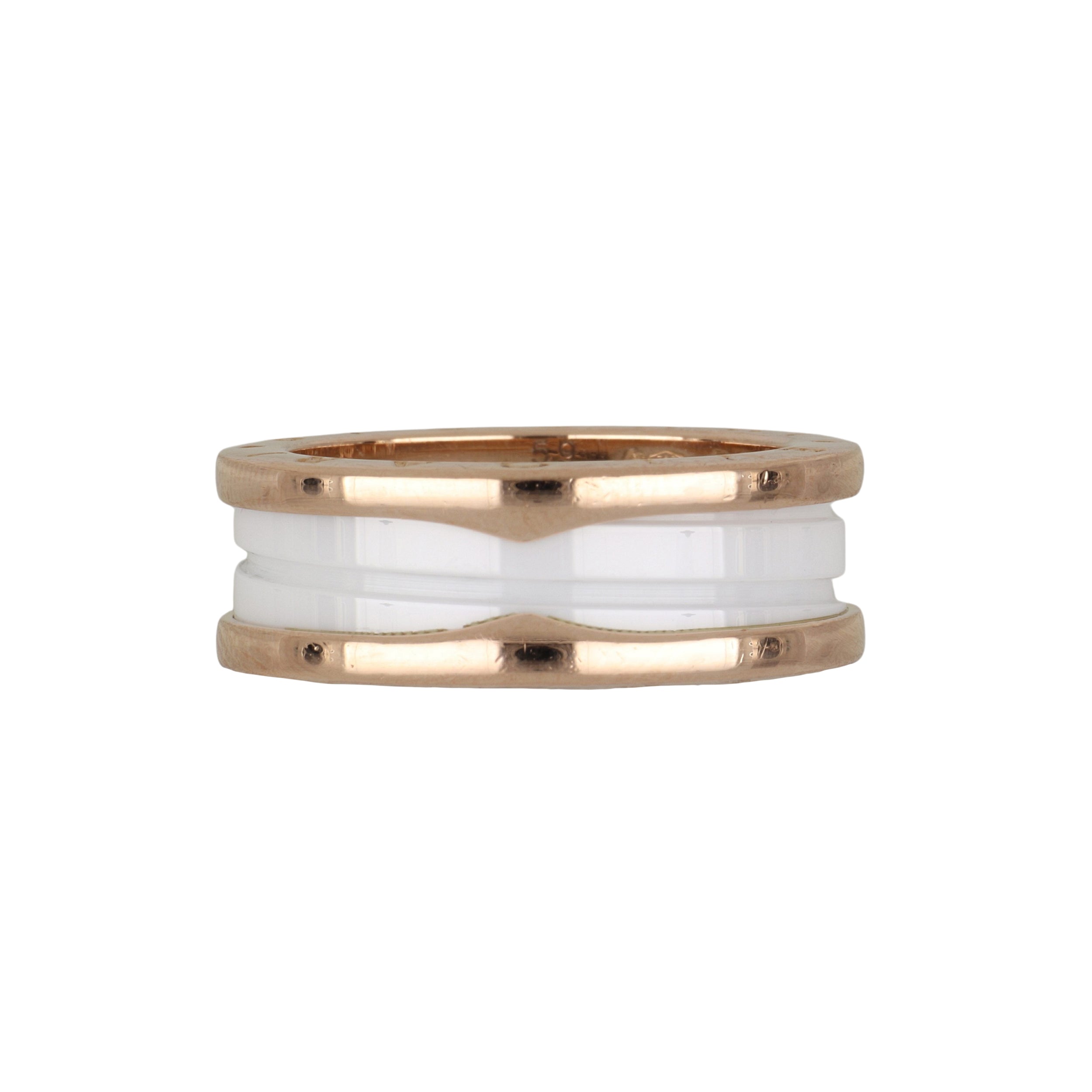 An estate Bulgari 18k rose gold white ceramic 'B. Zero' band.