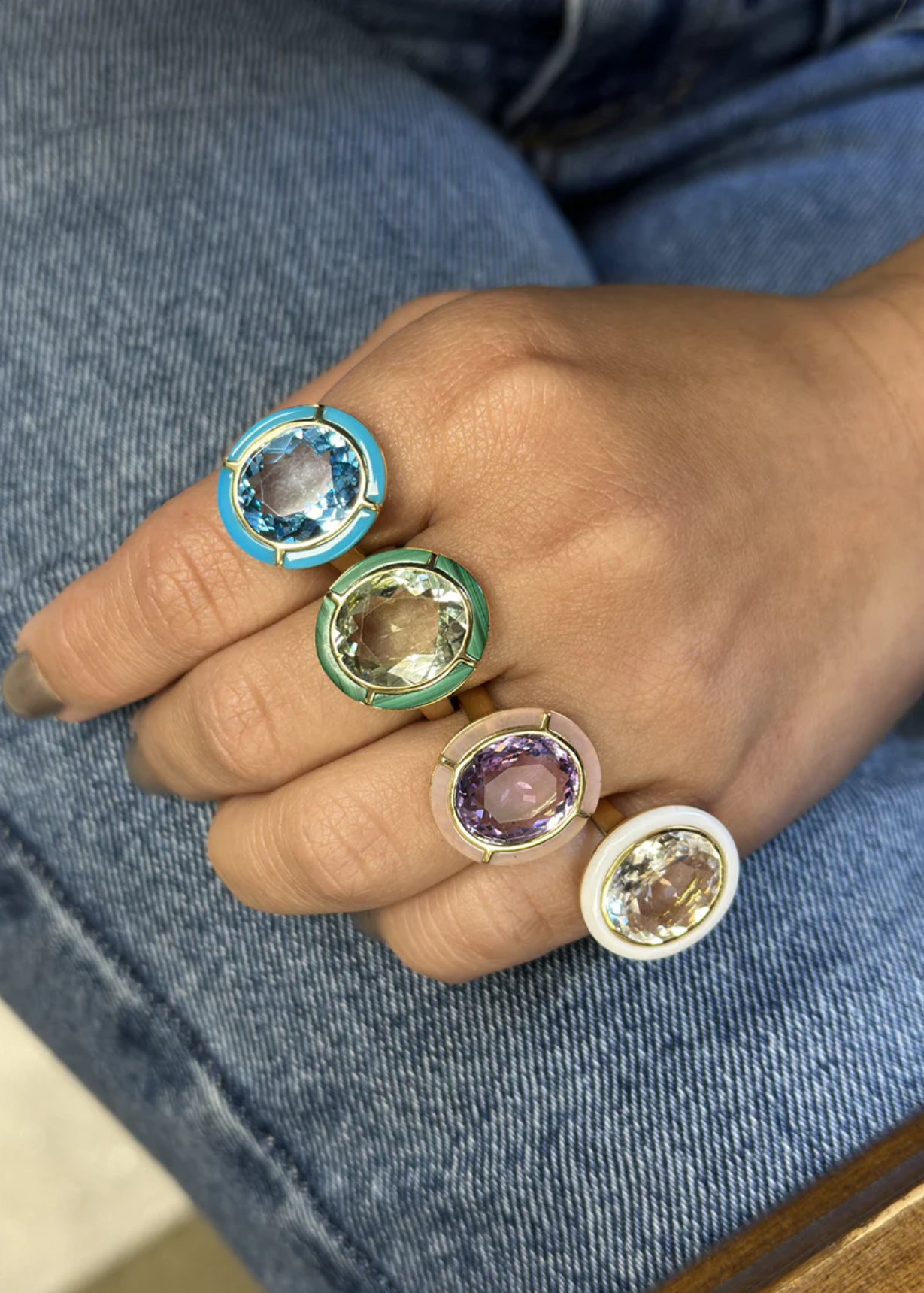 Goshwara 18K Melange Oval Blue Topaz Inlay Ring