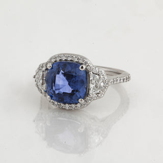 Tenenbaum Collection 18K White Gold Sapphire Cluster/Halo Ring with Diamond