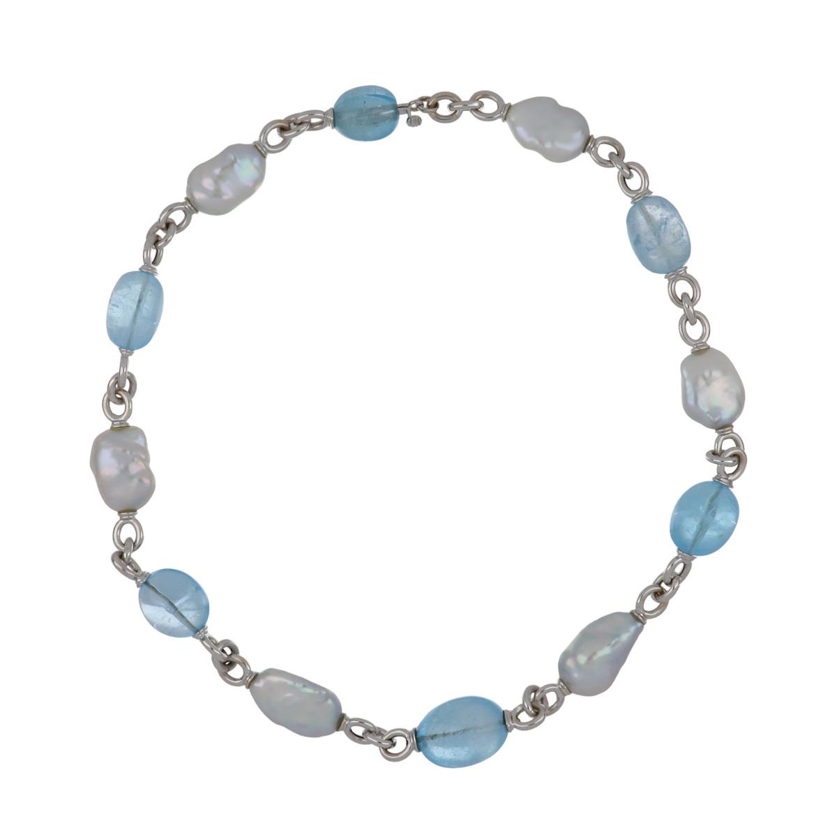 A Seaman Schepps inside strand Seville necklace with blue topaz nuggets and souffle freshwater pearl, with 18K white gold connectors.Official RetailerLength: 19 inches