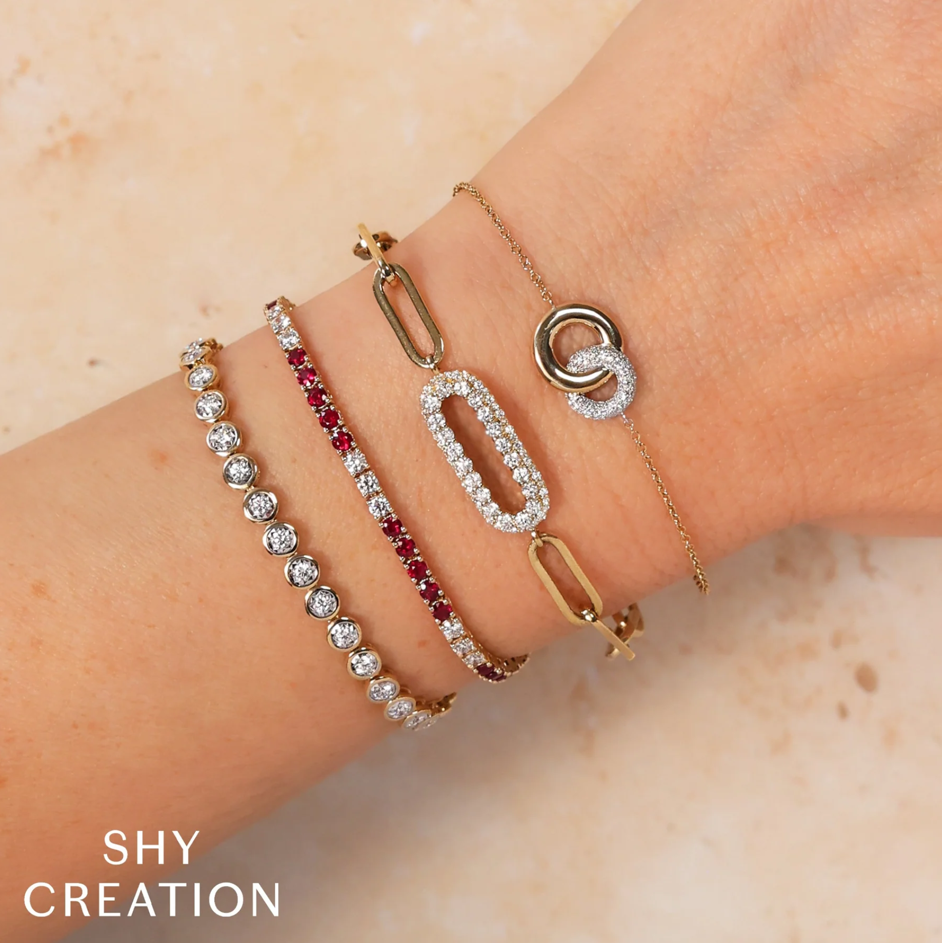 Shy Creation 14K Gold Paper Clip Link Diamond Bracelet