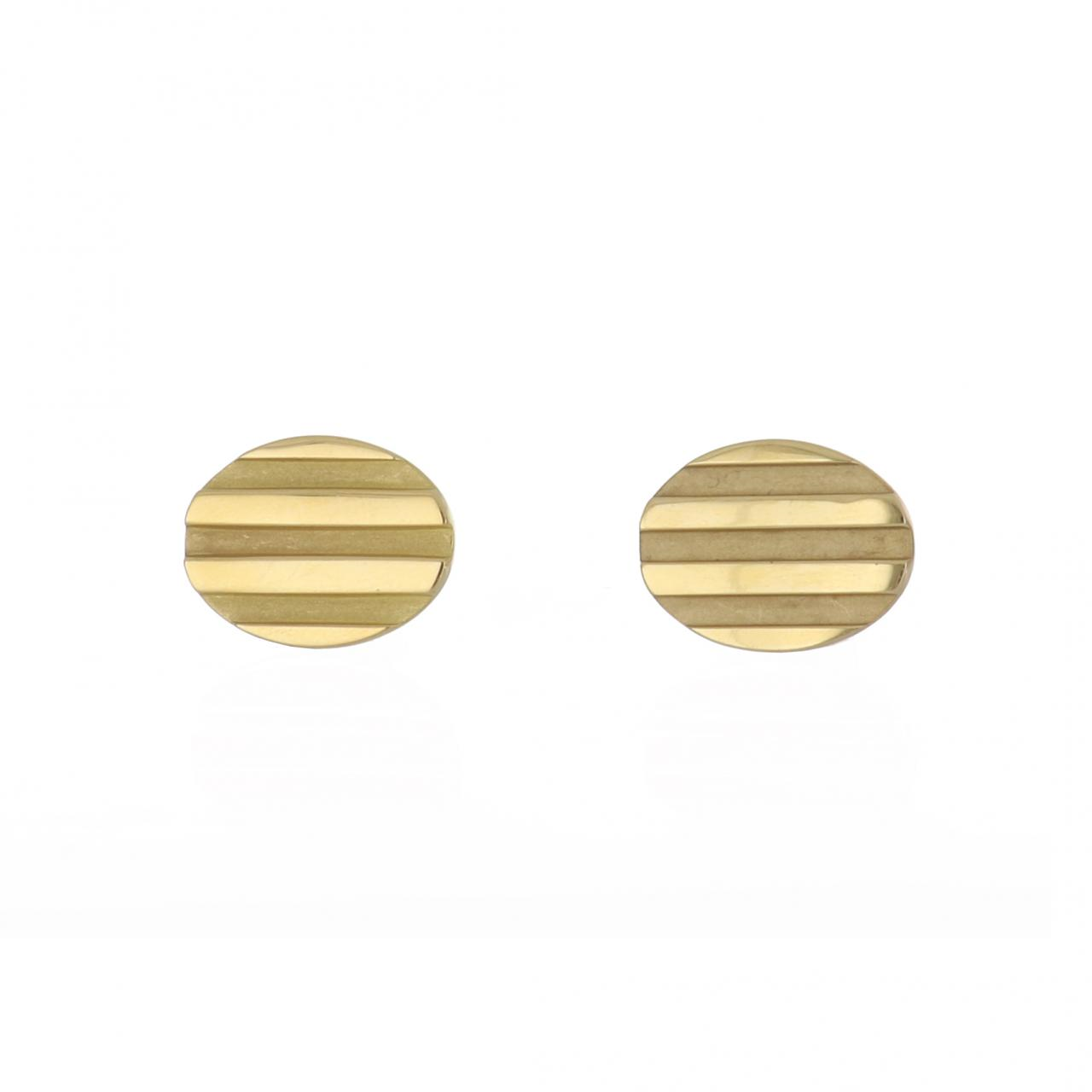 A vintage Tiffany & Co. 18K yellow gold striped pair of cufflinks. Circa 1990