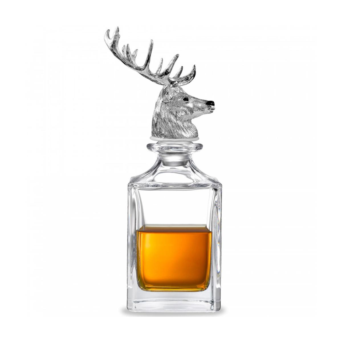 A Deakin & Francis silver plated stag head crystal decanter with hand-enameled eyes and nose.