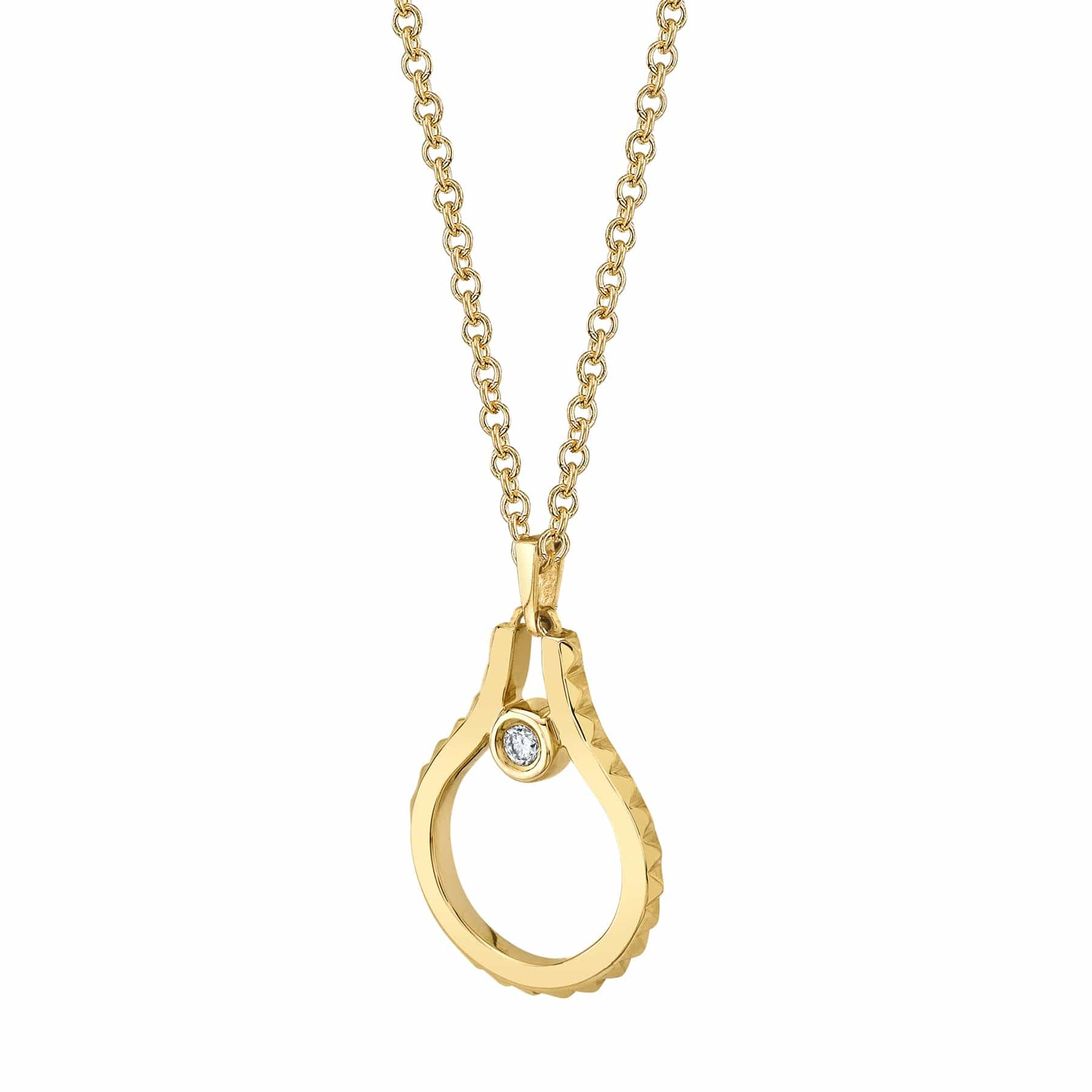 A Michael M 'Mini Signature MM Tetra' diamond pendant in 14K yellow gold.