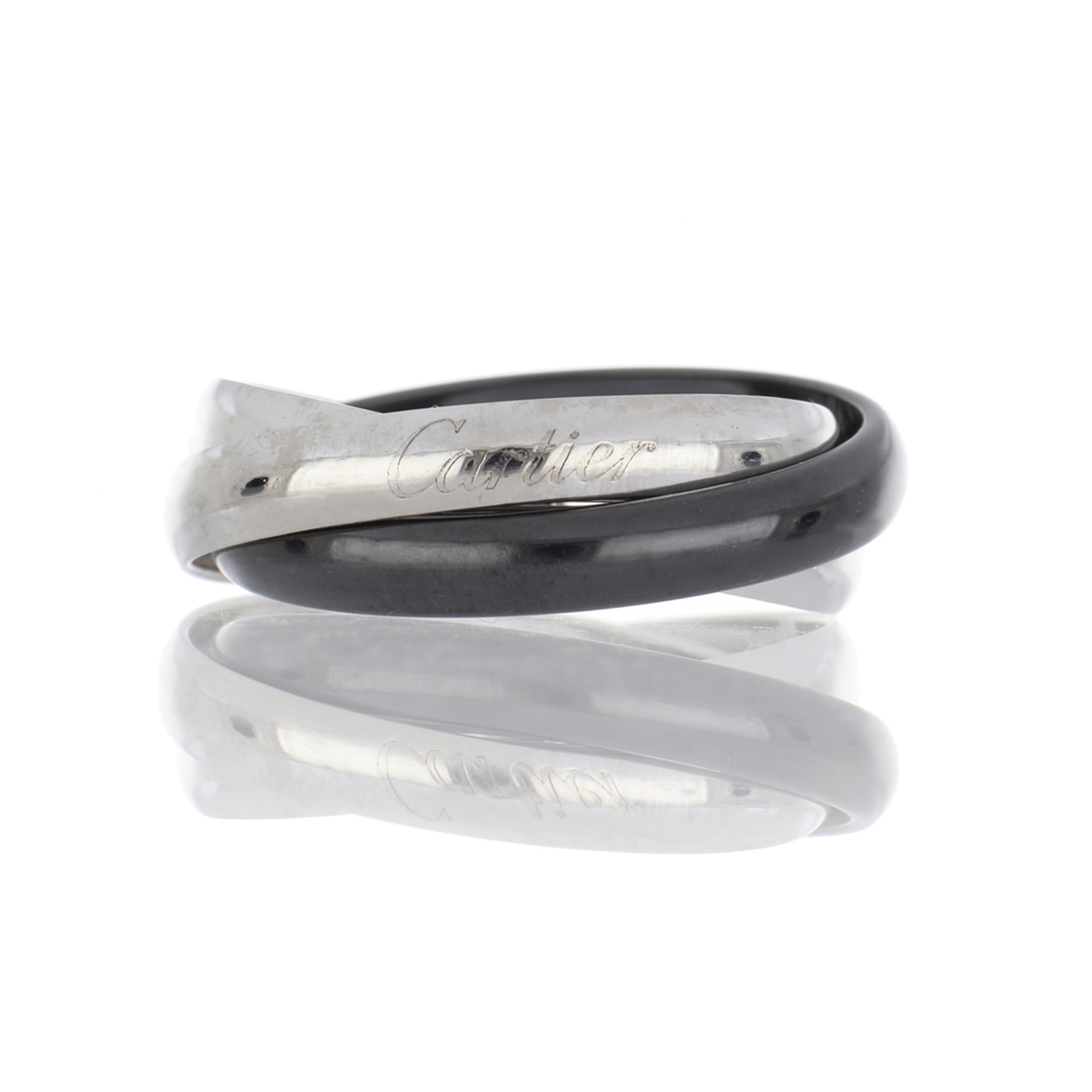 Estate Cartier 18K White Gold Ceramic Trinity Ring