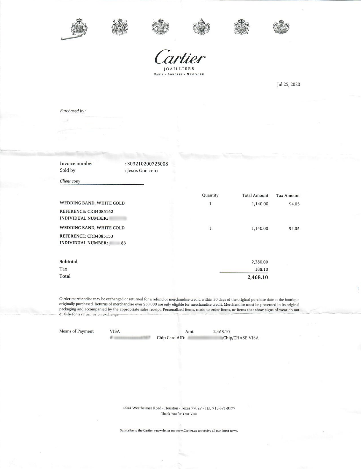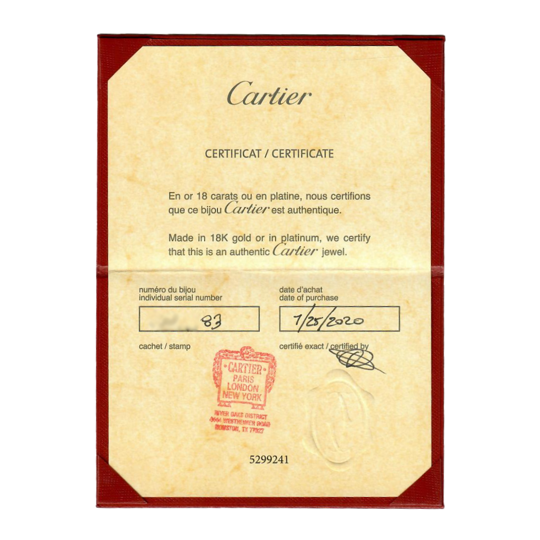 An estate Cartier 'Love' ring in 18K white gold. Accompanied with the box, original receipt, and certificate of authenticity. Circa 2020.