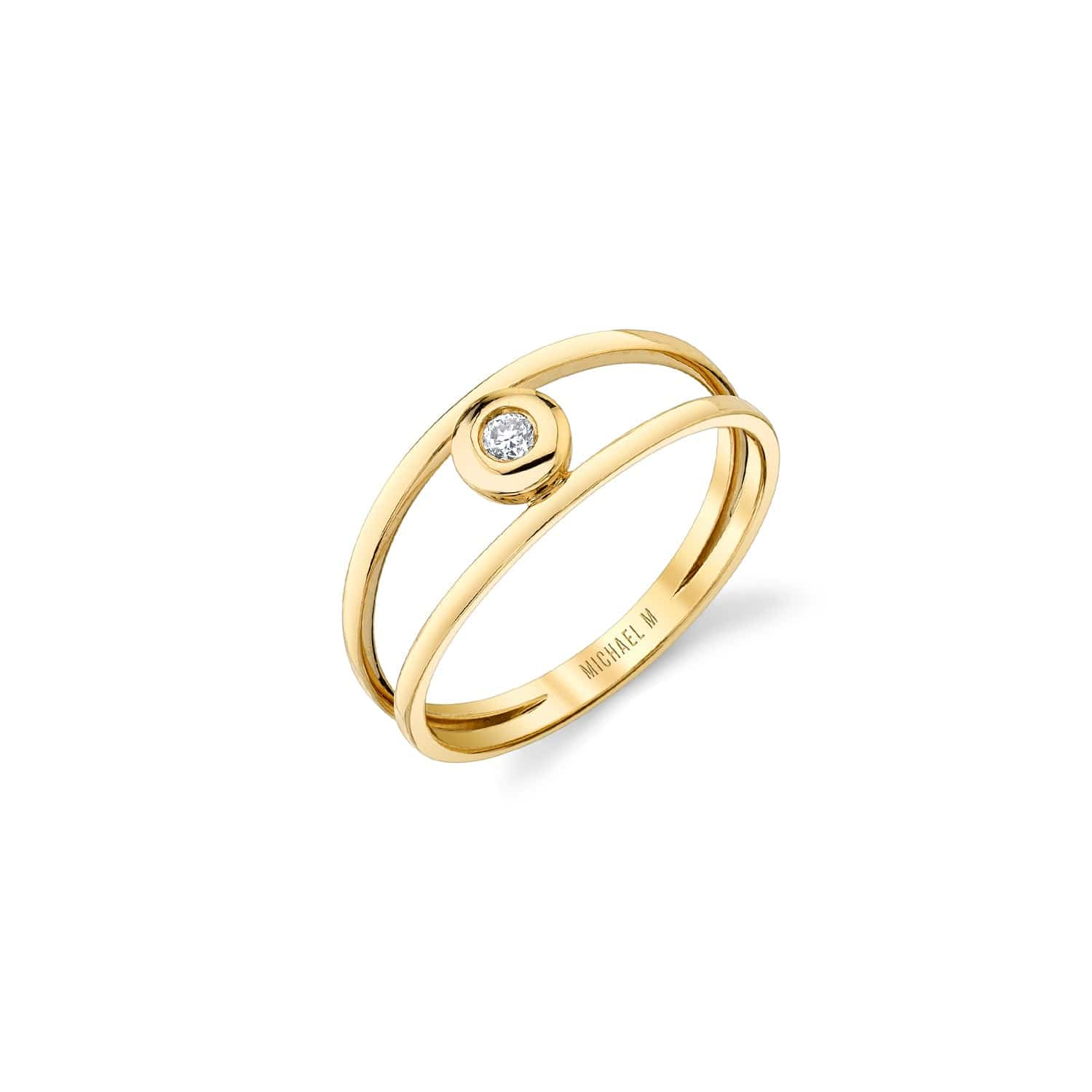 Michael M 14K Gold Round Bezel Double Shank Ring with Diamond