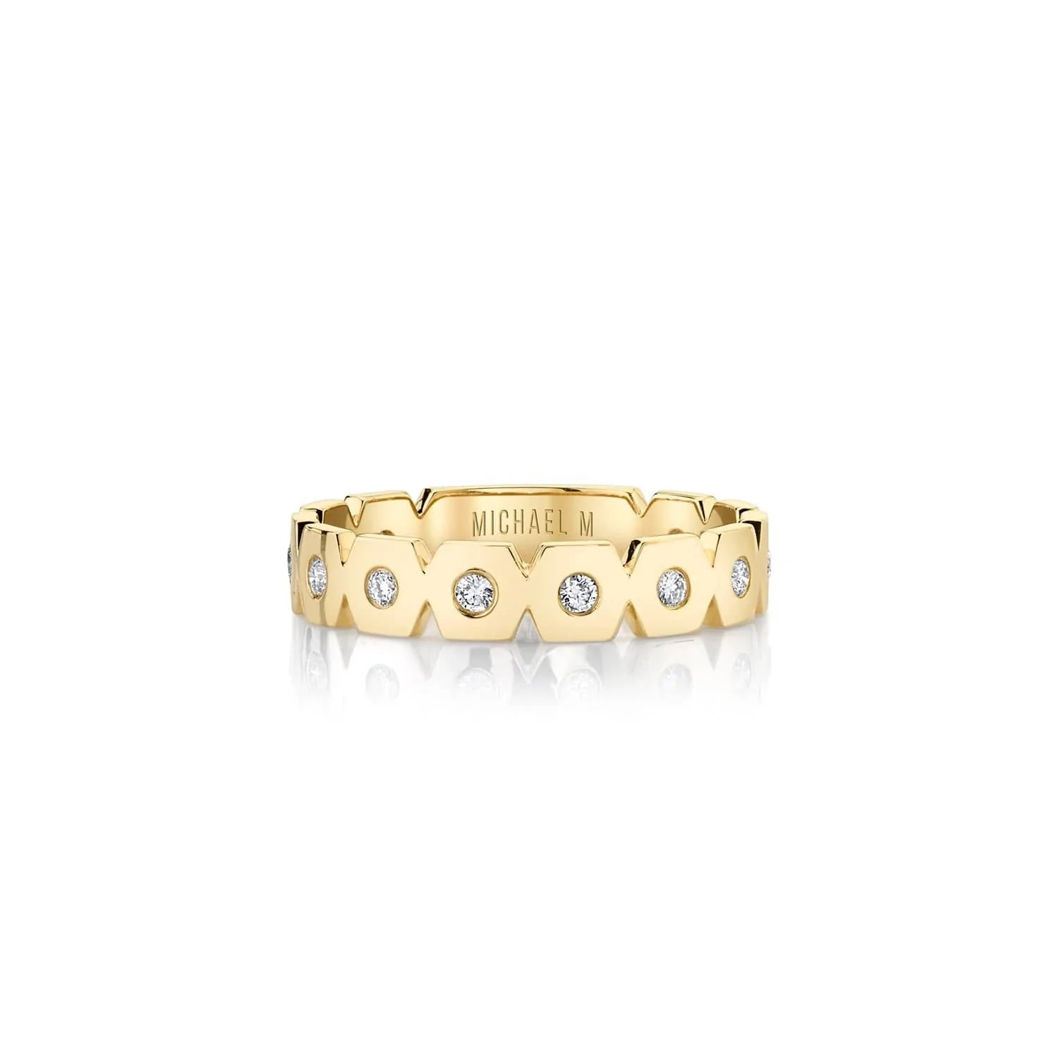 A Michael M 'Signature Bezel Infinity Band' with diamonds, in 14K yellow gold.