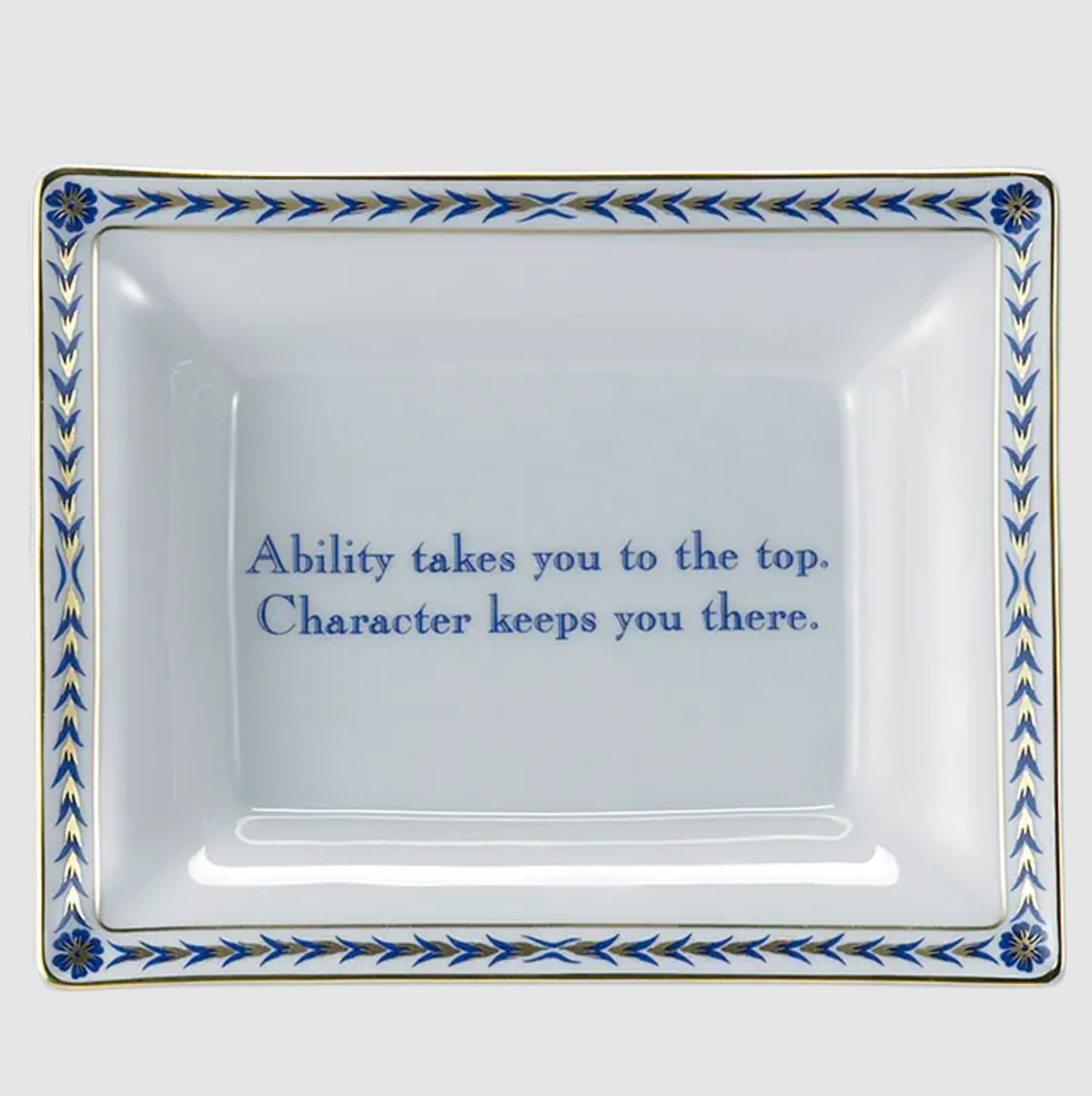 A Mottahedeh "Ability takes you to the top, character keeps you there," porcelain tray.