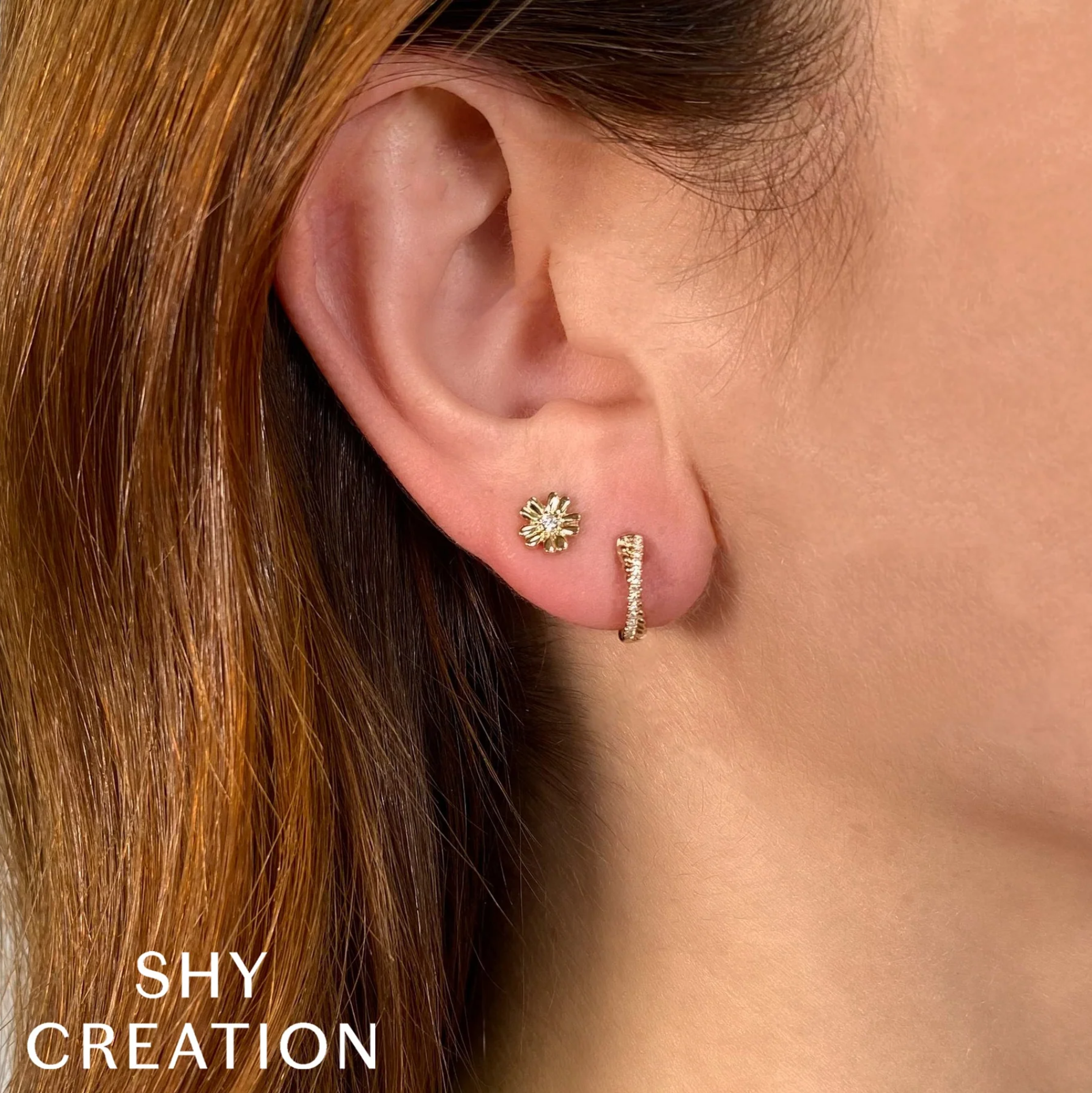 Shy Creation 14K Gold Diamond Flower Stud Earrings