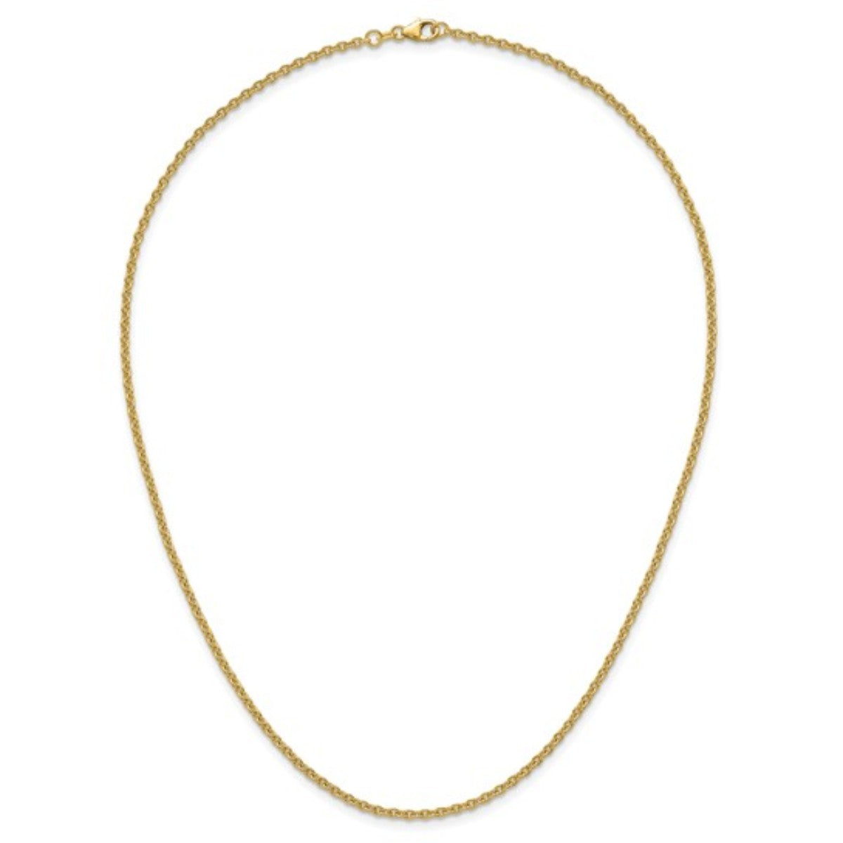 A new polished and diamond-cut 2.40mm solid cable chain set in 18K yellow gold.