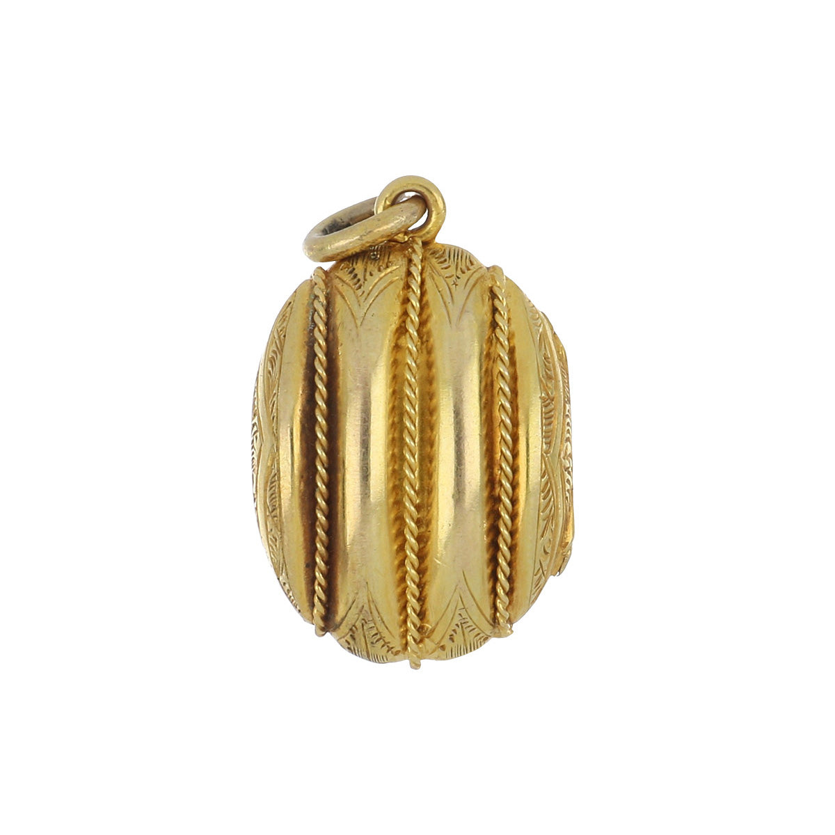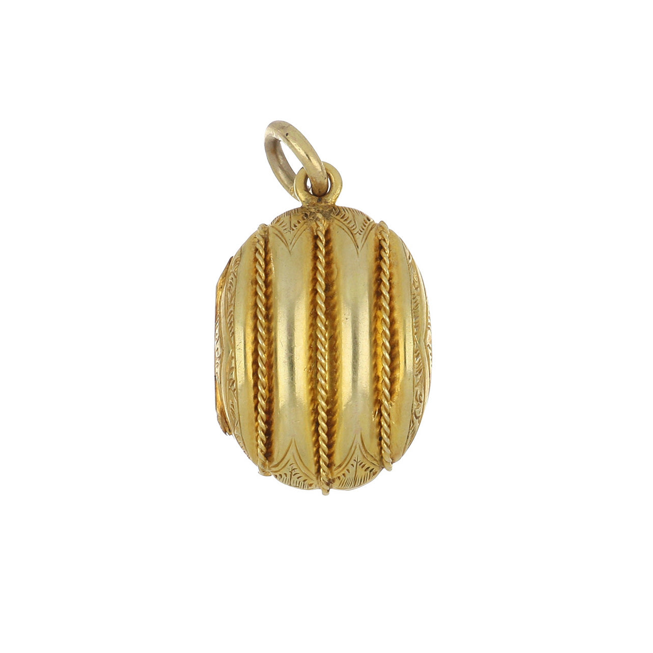 An antique Victorian 14K gold oval locket with twist detail. Circa 1880.Antique Collection5/8 x 1 1/8 in