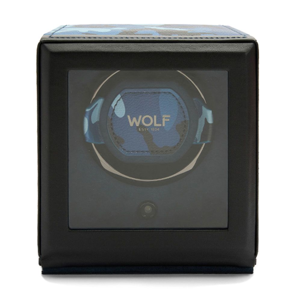 A WOLF Elements vegan leather single cub watch winder in elements water (blue camouflage).