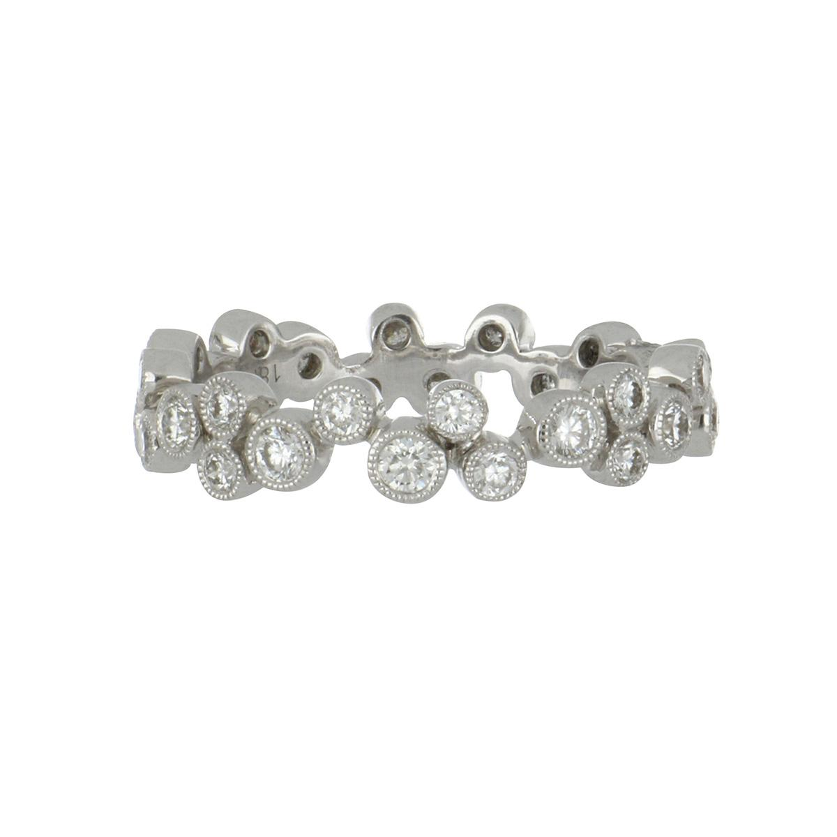 A Beverley K 18K white gold cascading bezel set diamond eternity band.32 round diamonds: 0.84 total carat weightSize: 6.50; not sizable