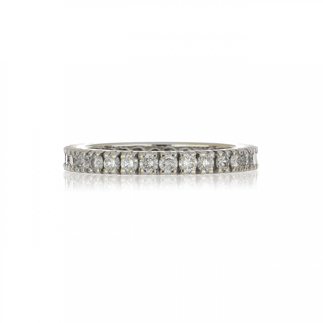 A 14K white gold diamond eternity band.