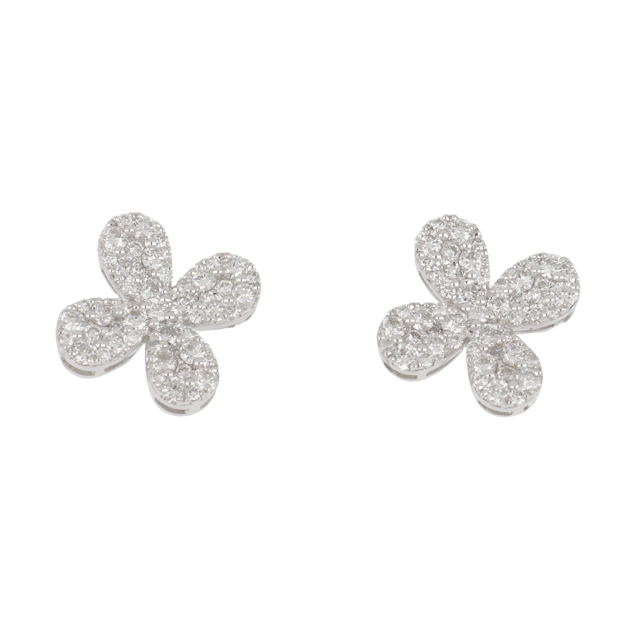 18K White Gold Diamond Clover Stud Earrings